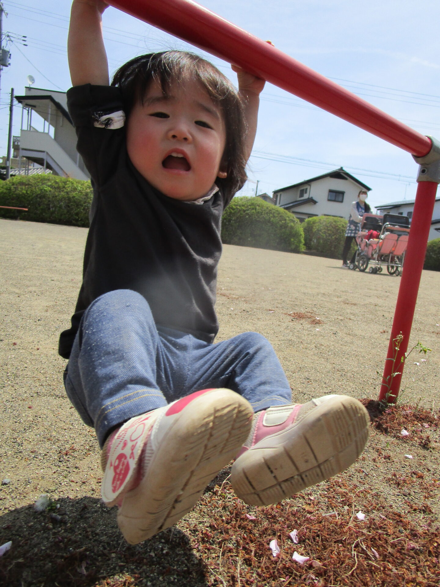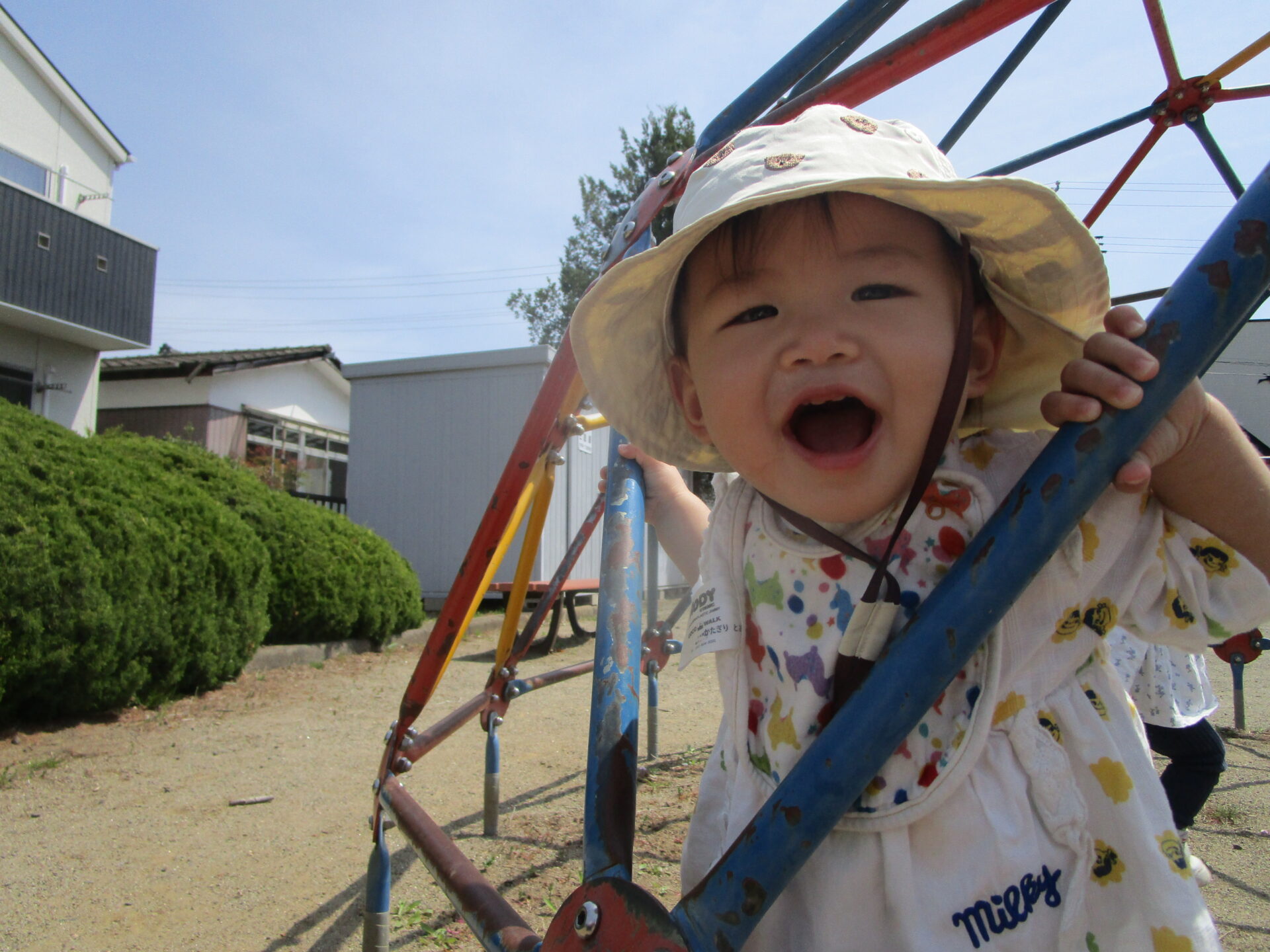 柵にぶらさがったりなど、思い思いに身体を動かして遊ぶことを楽しんでいます。