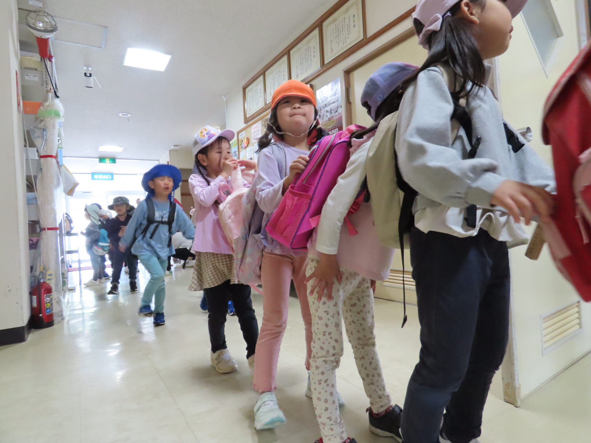 サッカーに興味深々のくじら組(5歳児)は、ワクワクで会場に向かいます。