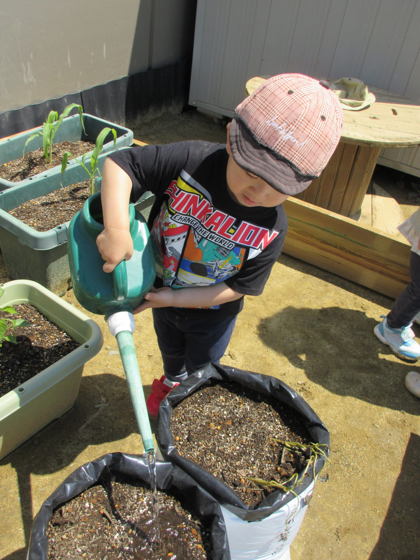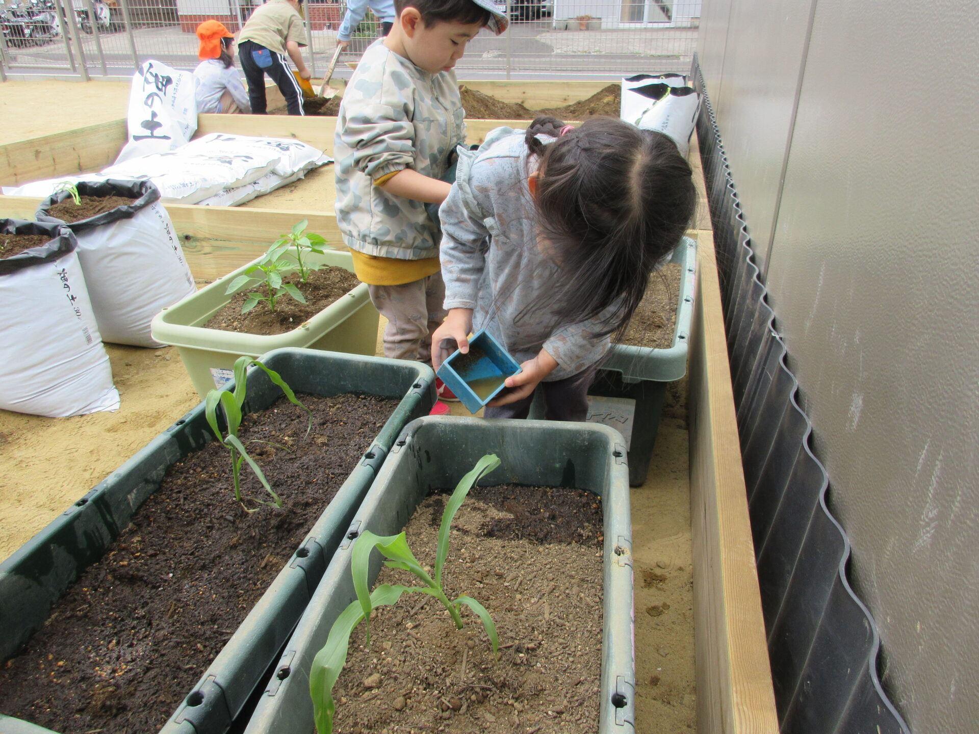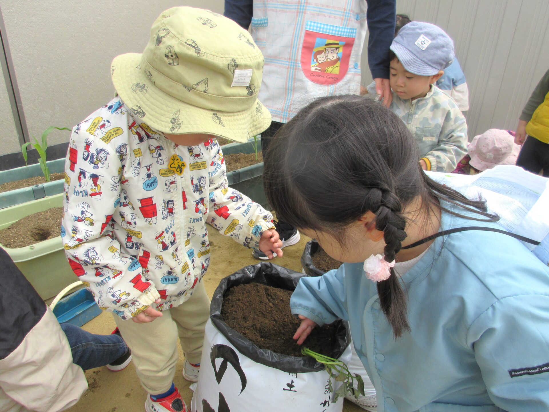 にじ組(3歳児)のこどもたちが野菜の苗を植えました。