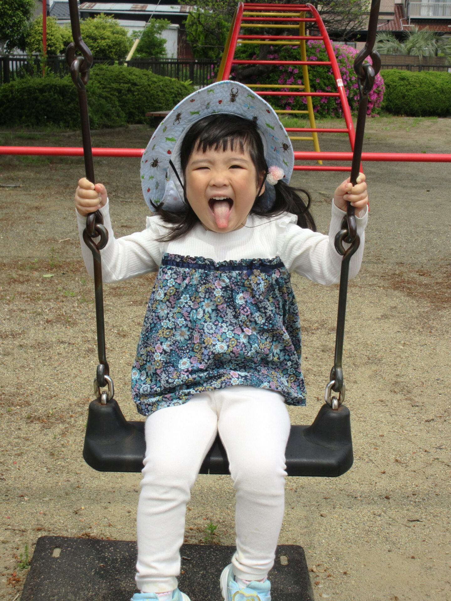 お目当てのブランコに乗って、ご機嫌のAちゃん。