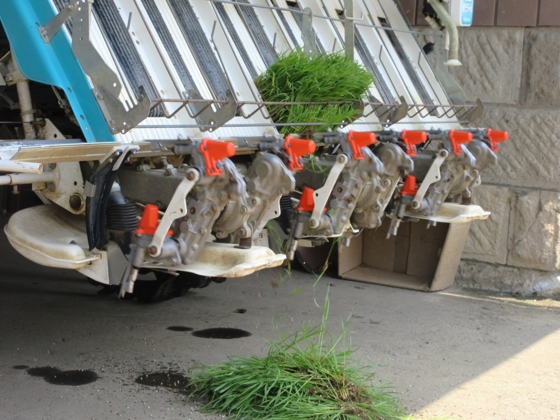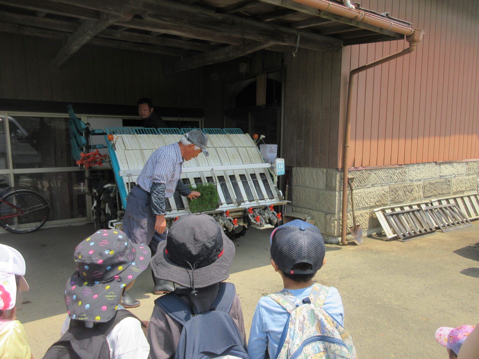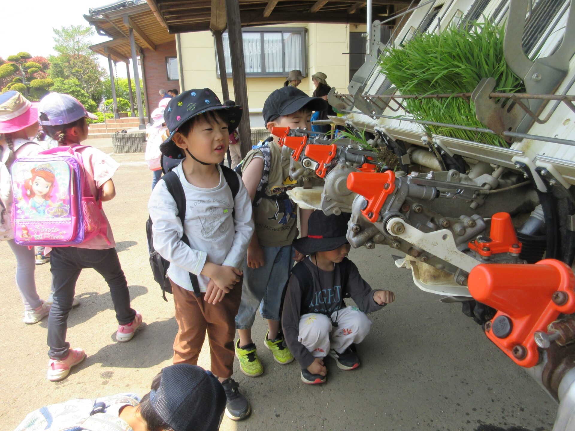 田植え後には、ご厚意で田植え機も見せていただきました。
