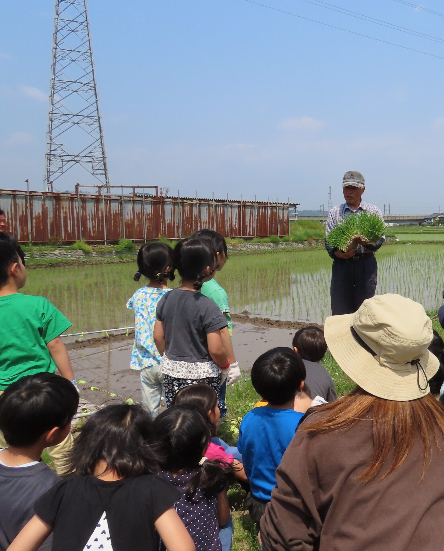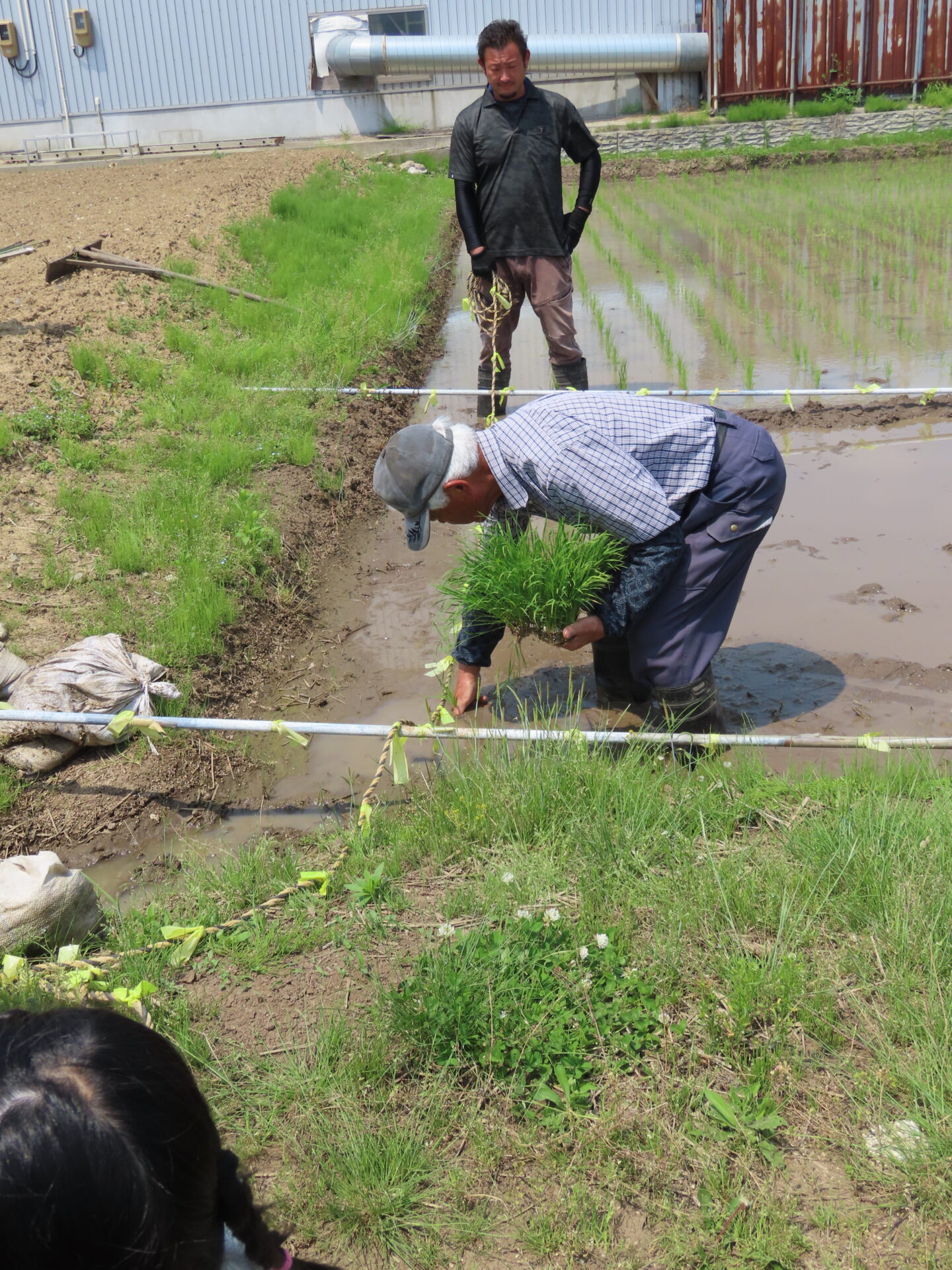 田んぼを貸してくださっている方に稲の苗の説明や植え方を教えていただきました。