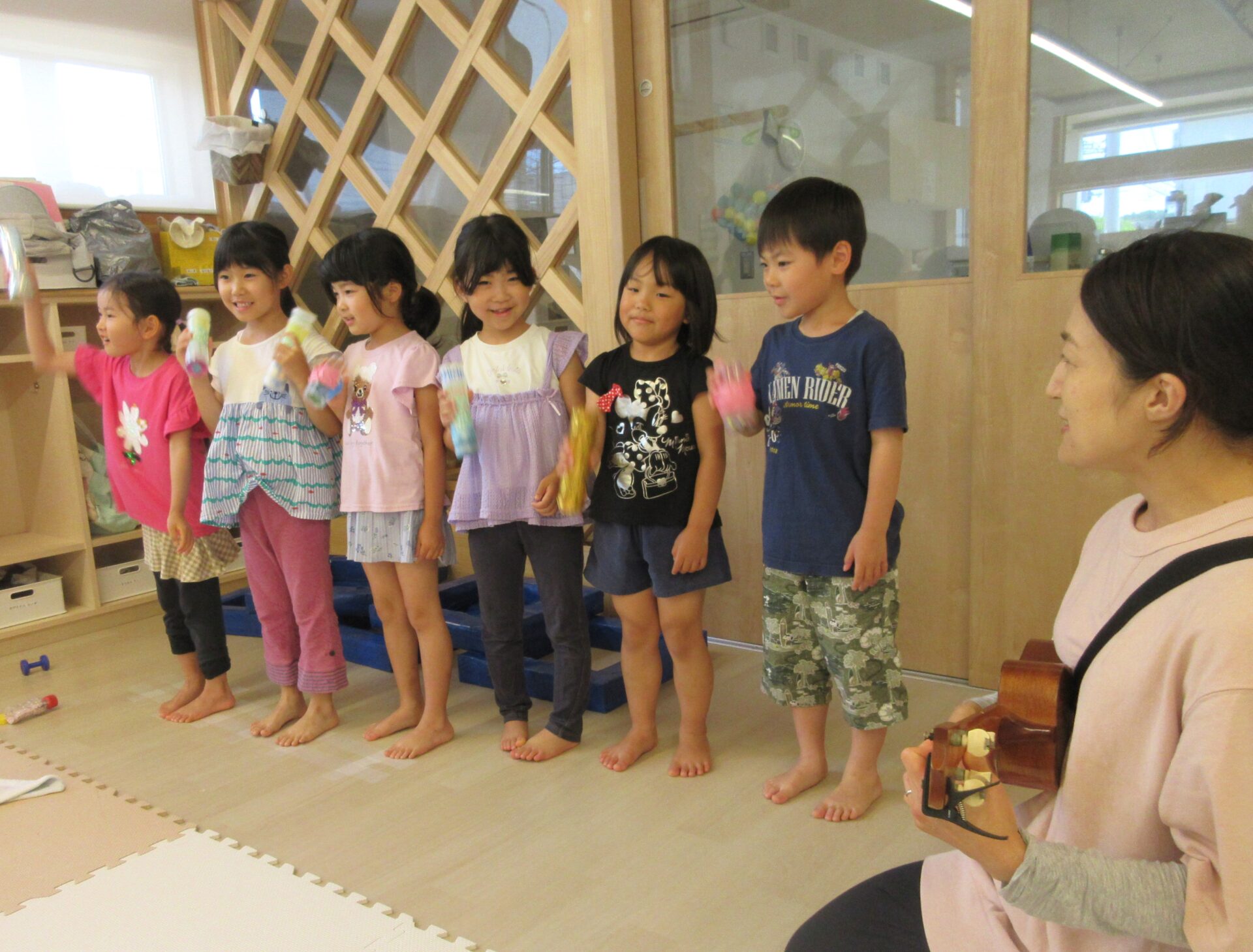 手作りマラカスを鳴らしながら、歌います。