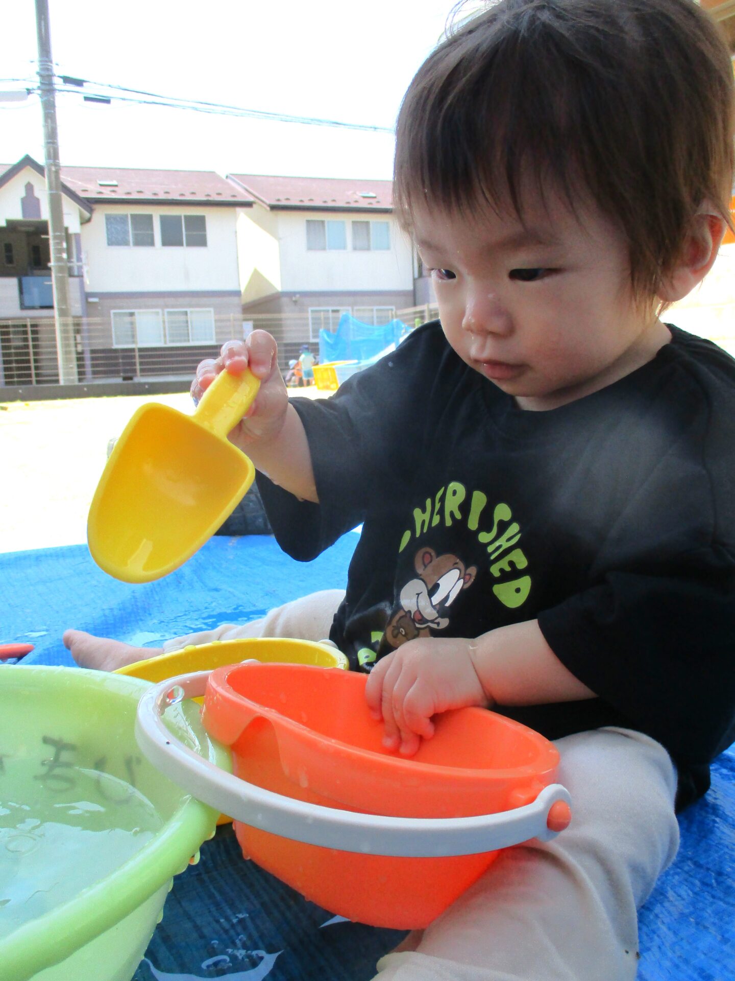 バケツやスコップも使って、ばしゃばしゃ!
