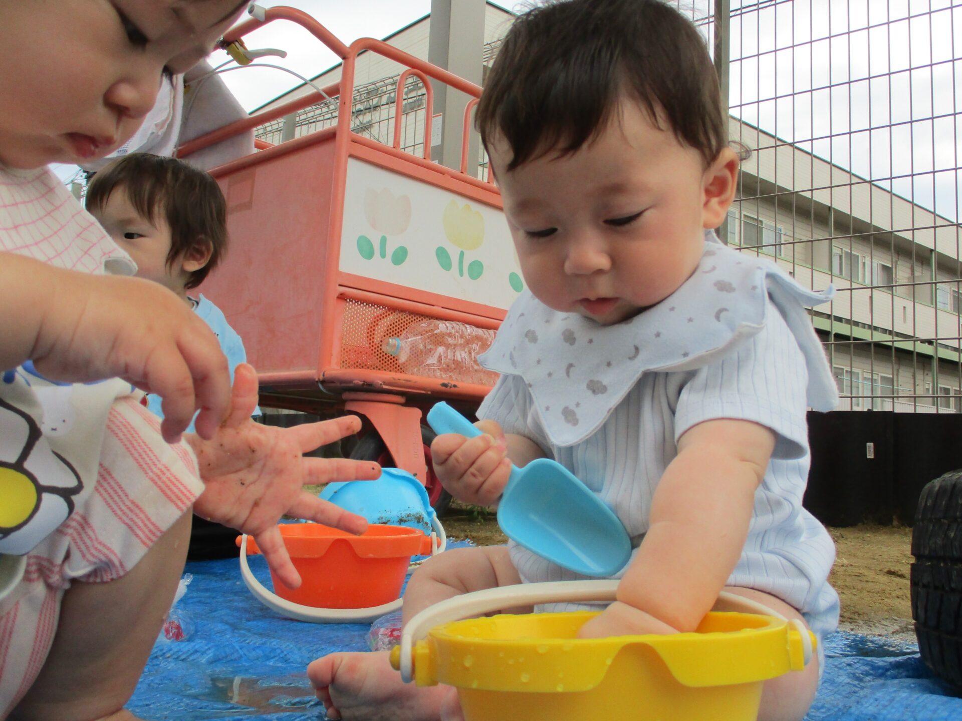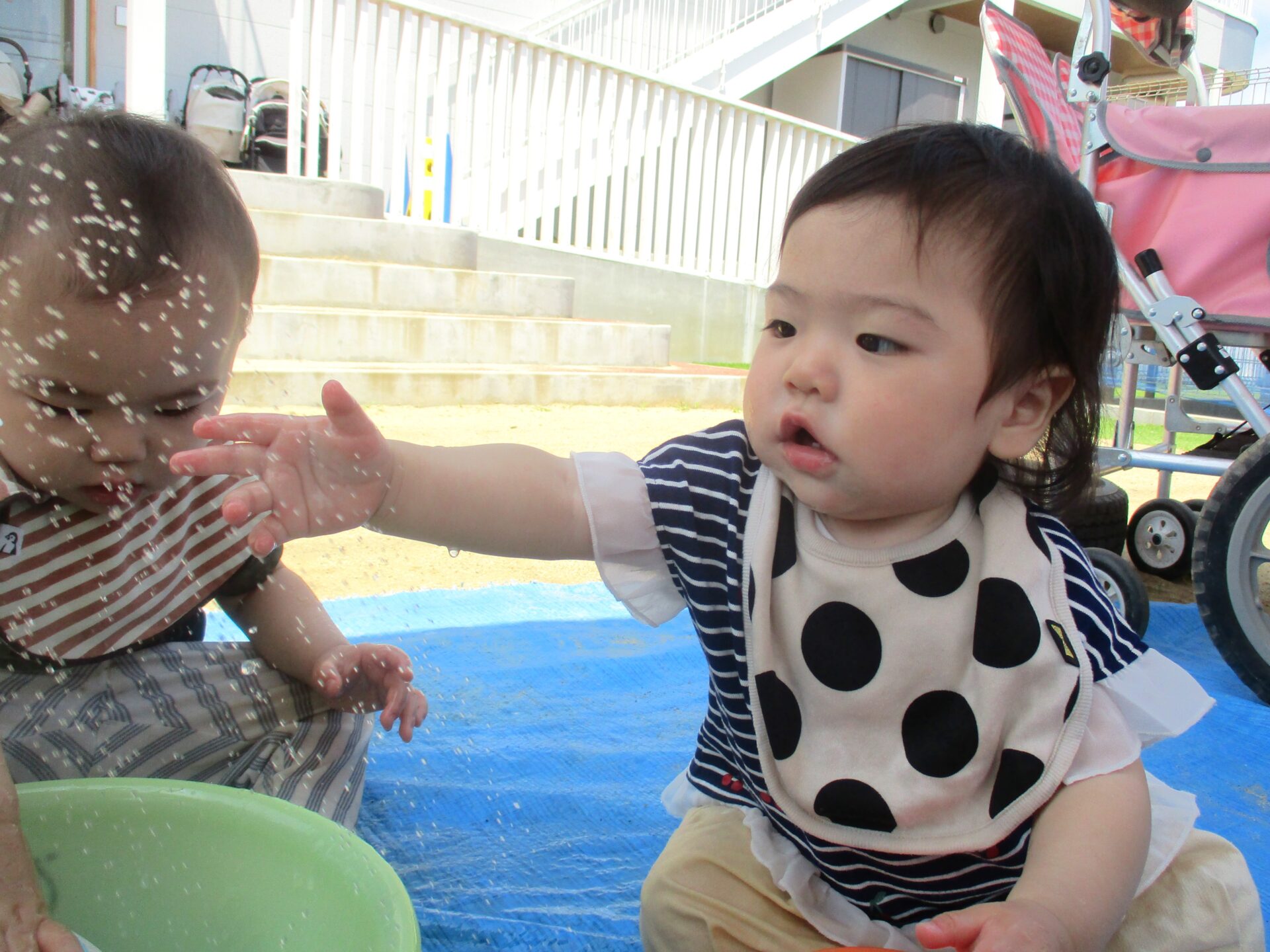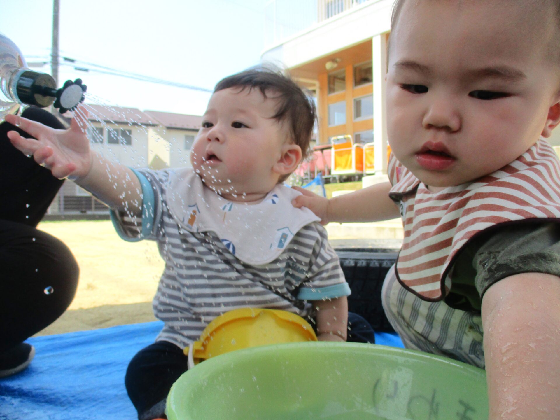 夏が来たかのような暑い日、うみ組(0歳児)のこどもたちが園庭で遊んでいたのは…