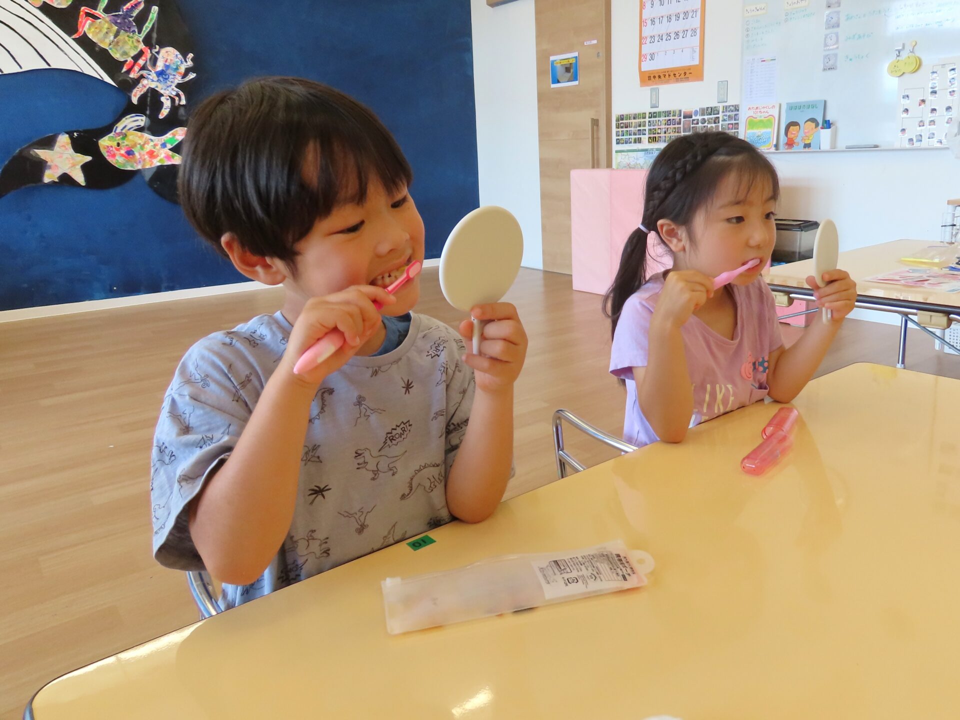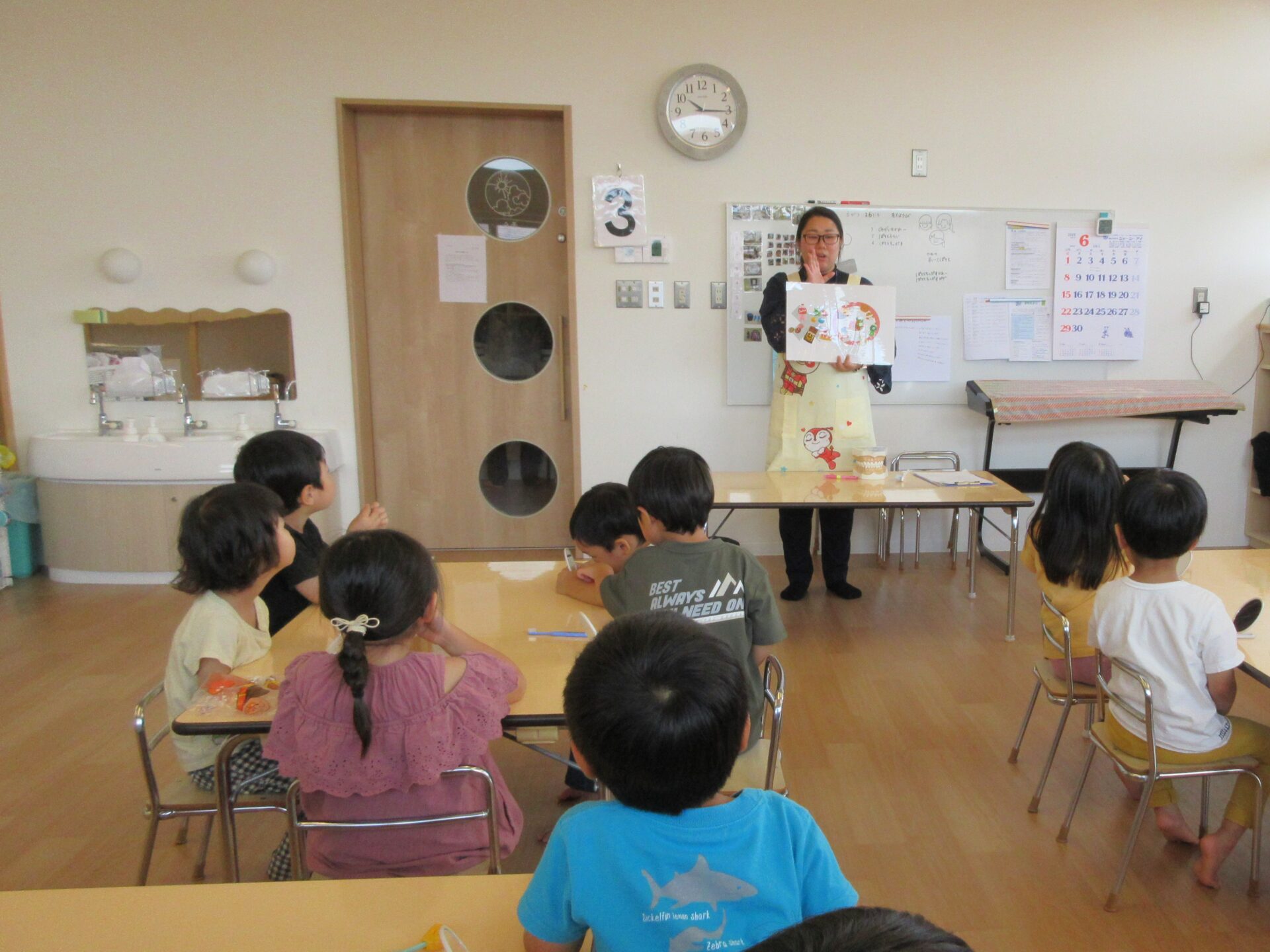 歯や歯磨きについてのお話をたくさん教えてもらったそら組(4歳児)とくじら組(5歳児)のこどもたち。