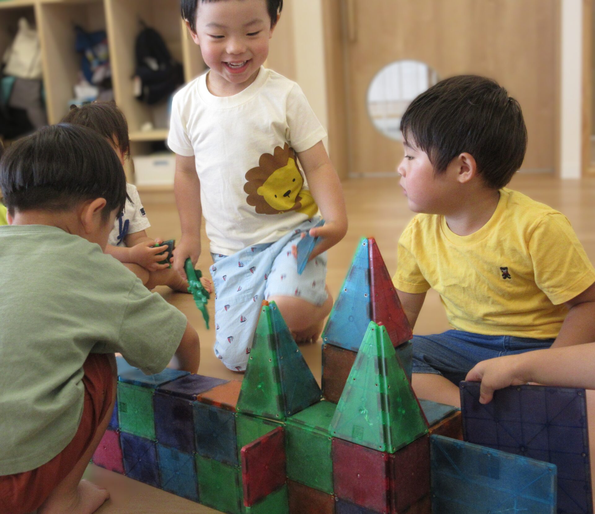 ひとりで遊ぶことも楽しいブロック遊びですが、一緒に作ることを楽しむことで、大きなものをつくることができたり、イメージが広がることも楽しい様子です。