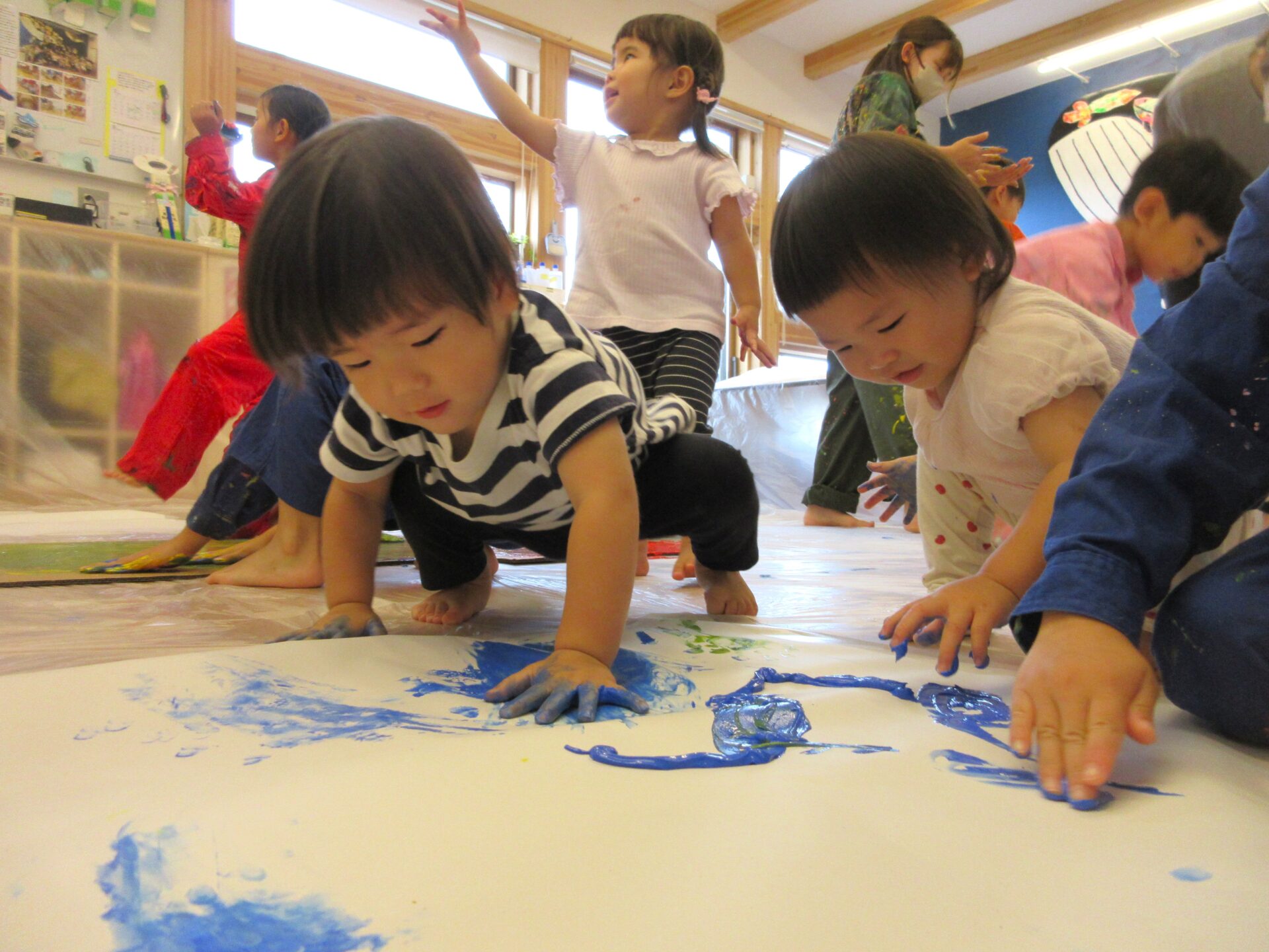 『相手の気持ちを考えて行動をする』くじら組の思いやりの気持ちがあふれる楽しい絵具遊びとなりました。