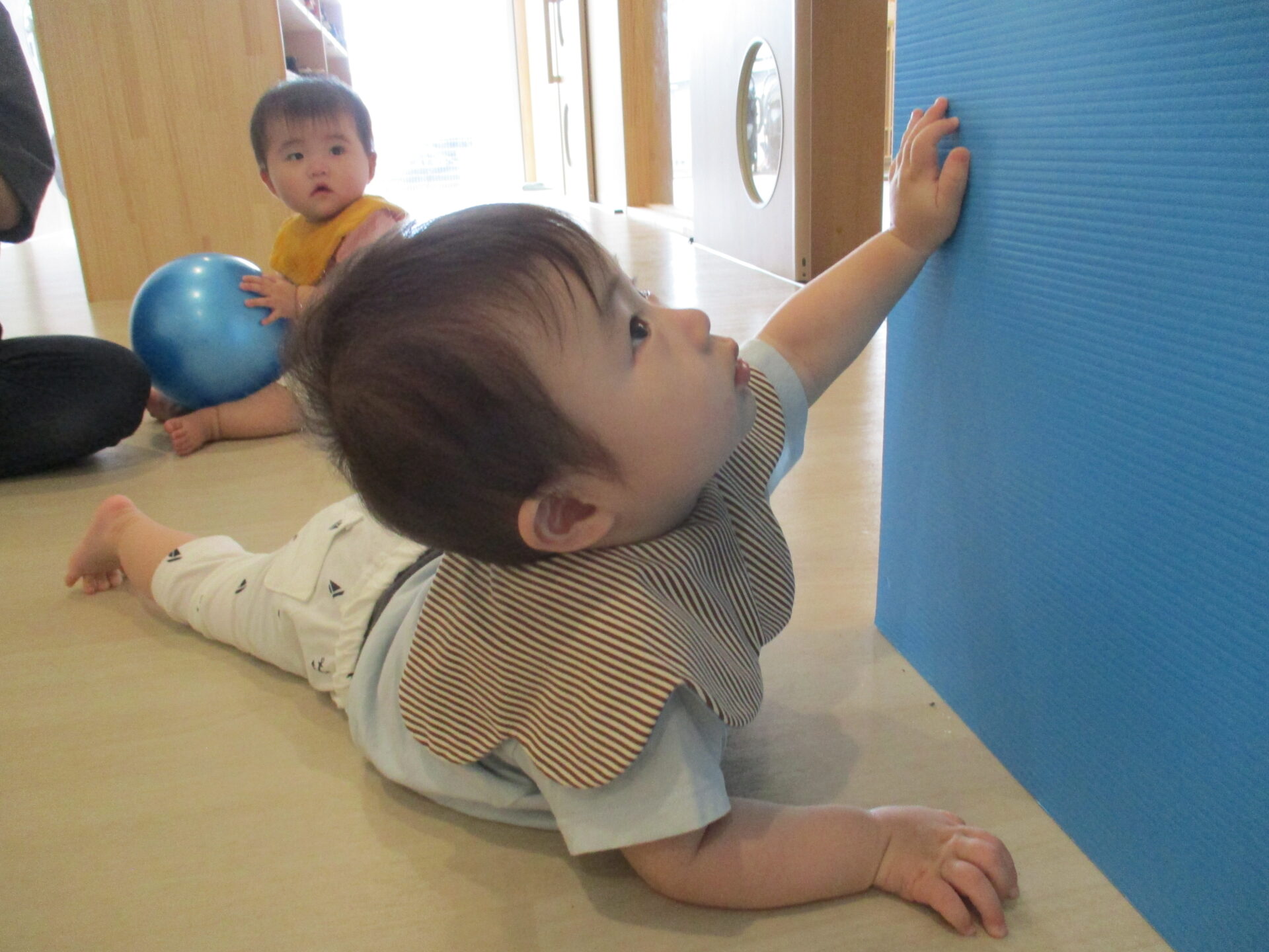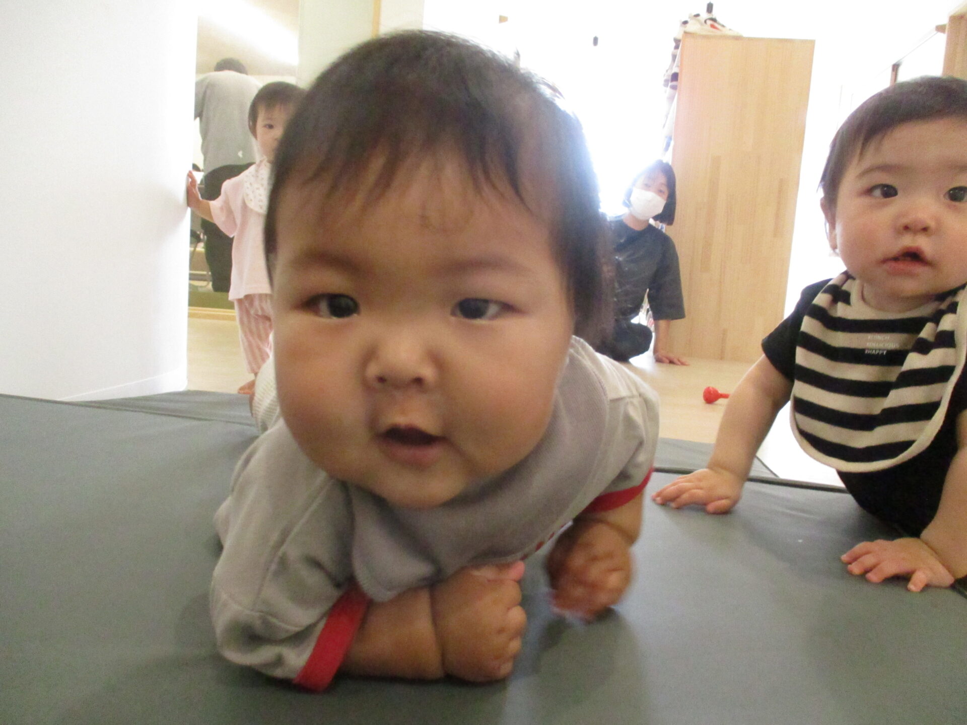 うみ組(0歳児)のこどもたちもハイハイやつかまり立ちをしながら、探検を楽しんでいます。