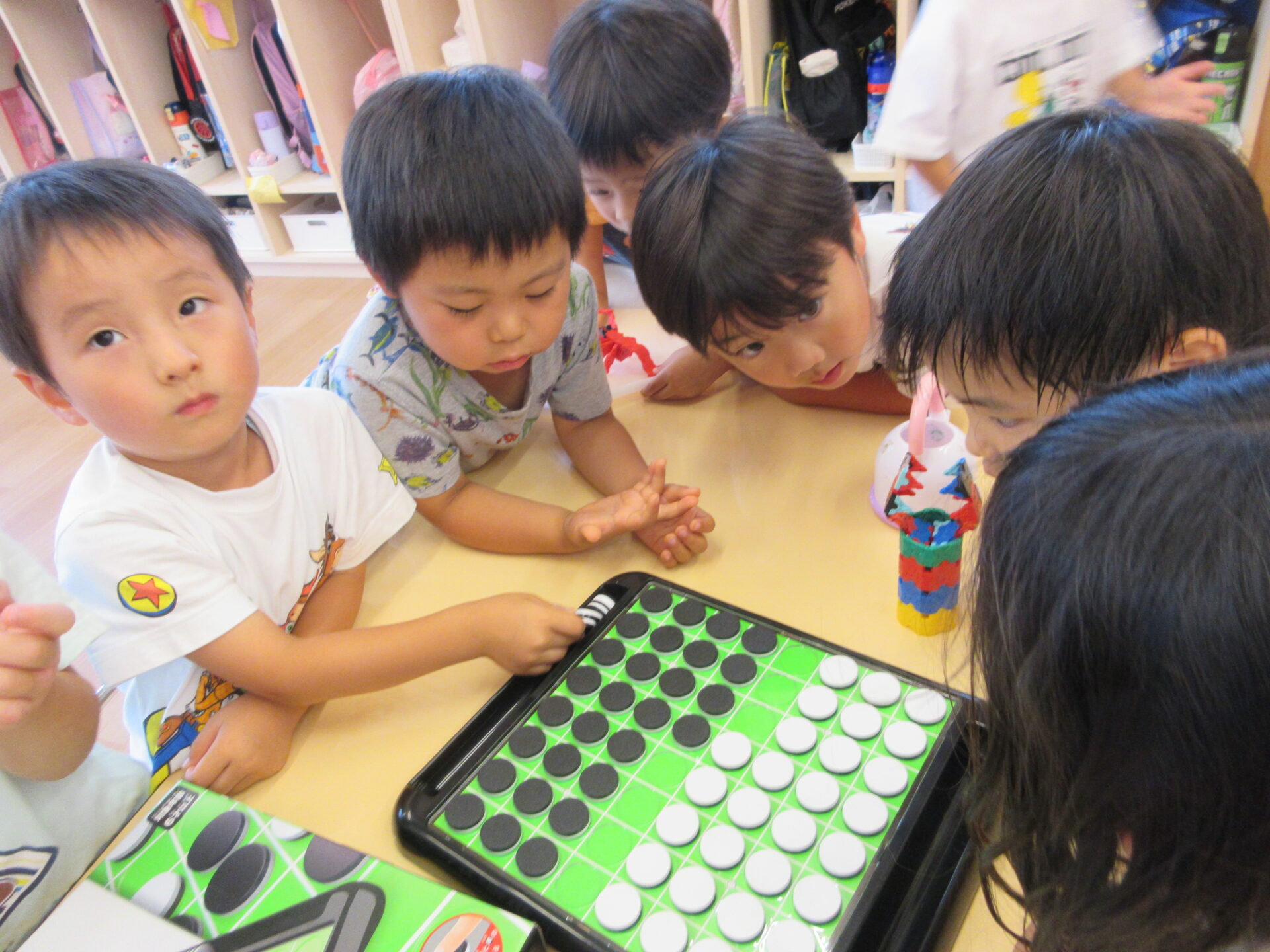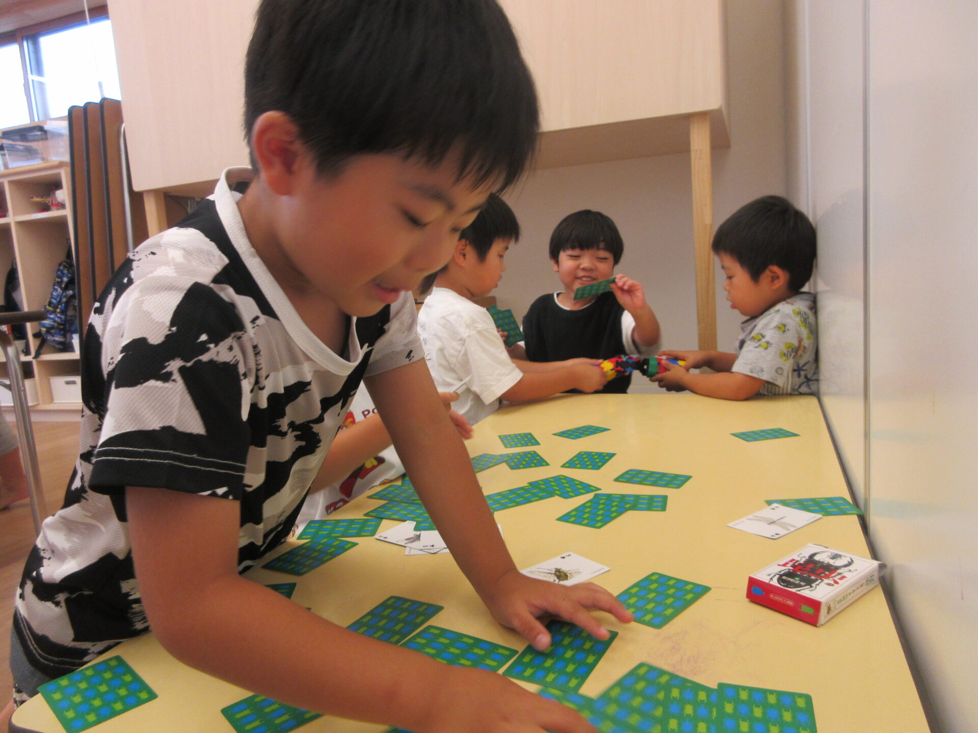 大好きな虫の絵カードを使っての神経衰弱やオセロ、ビーズなどの遊びも人気です。