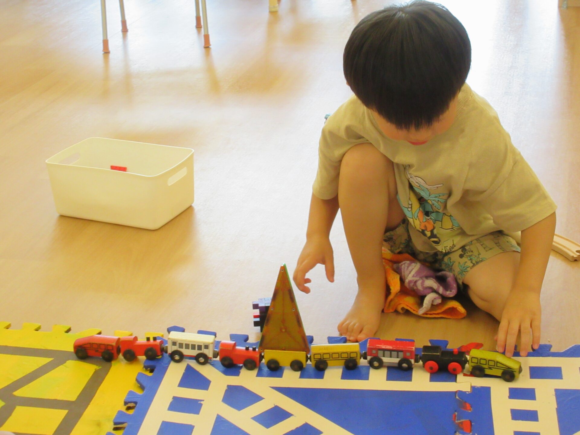 にじ組が現在夢中になっている電車遊びの線路ができました!!