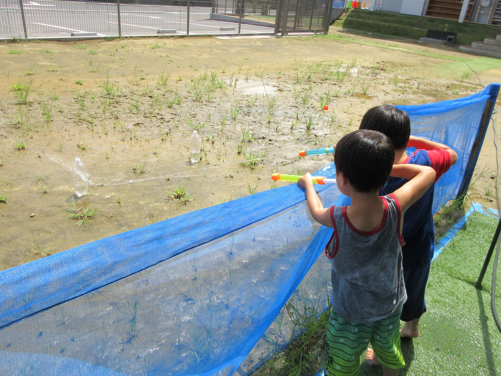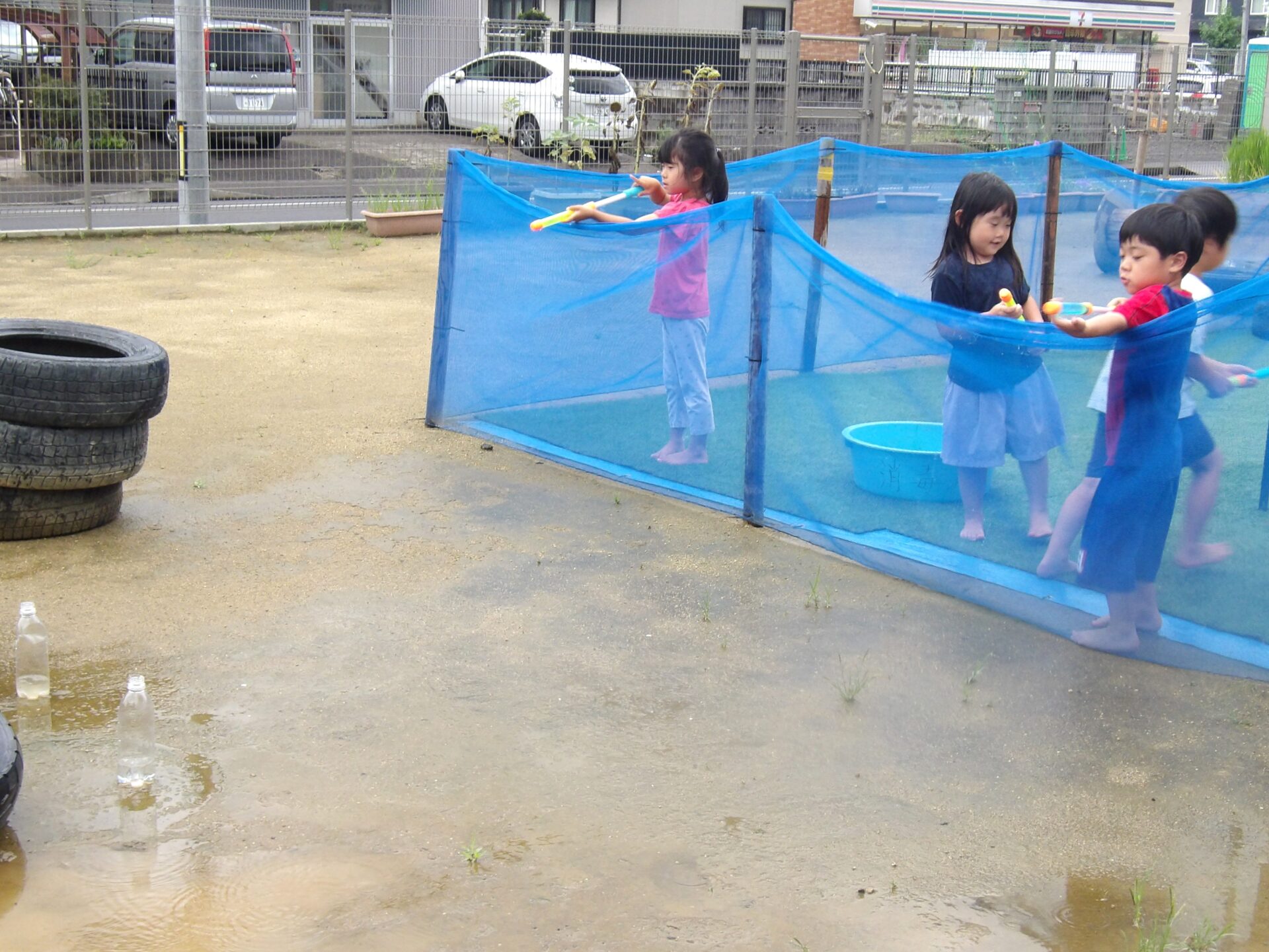 暑い日が続き、戸外で遊ぶ時間は限られていますが、短時間でも水に触れて汗を流して過ごしています。