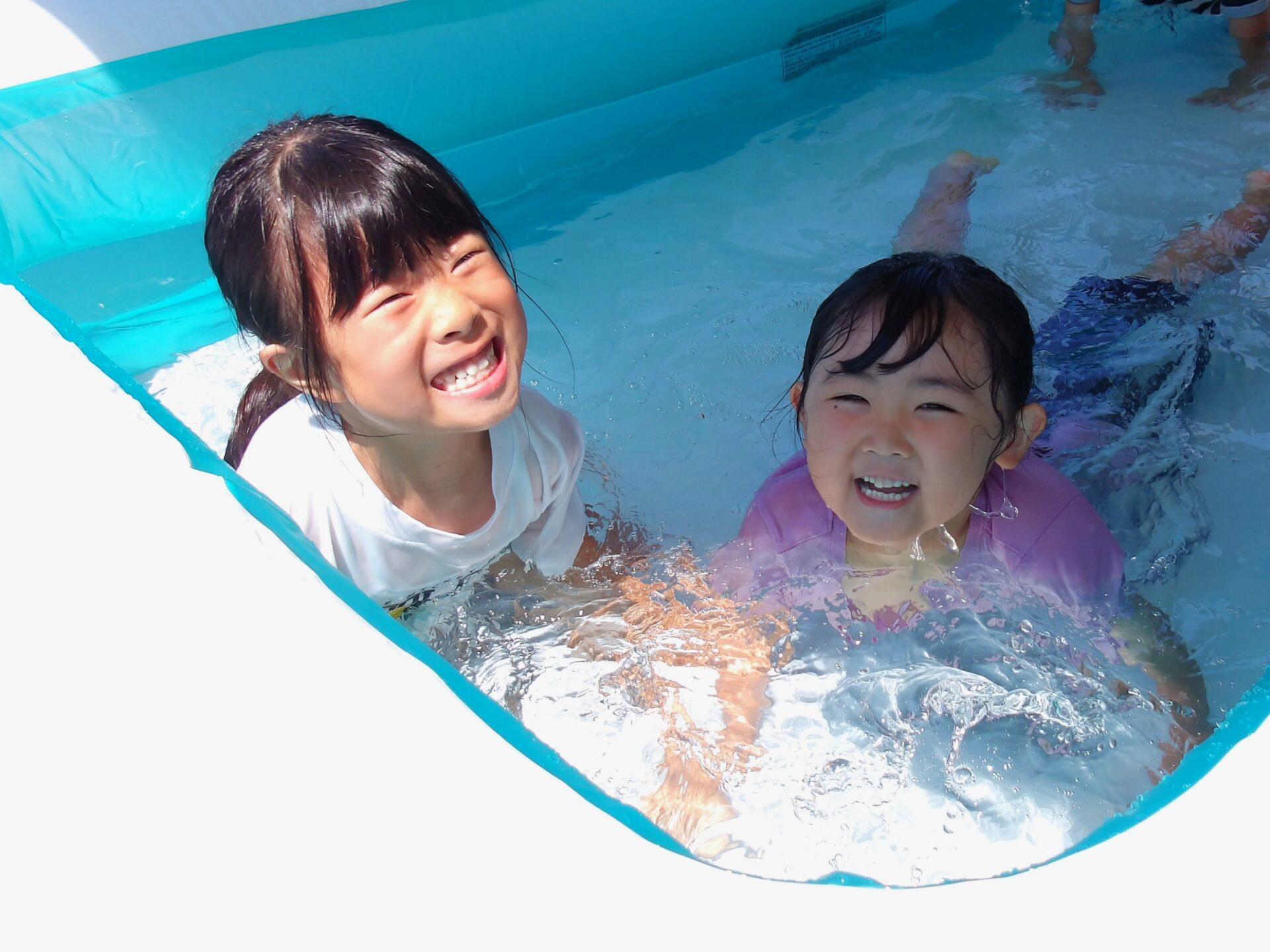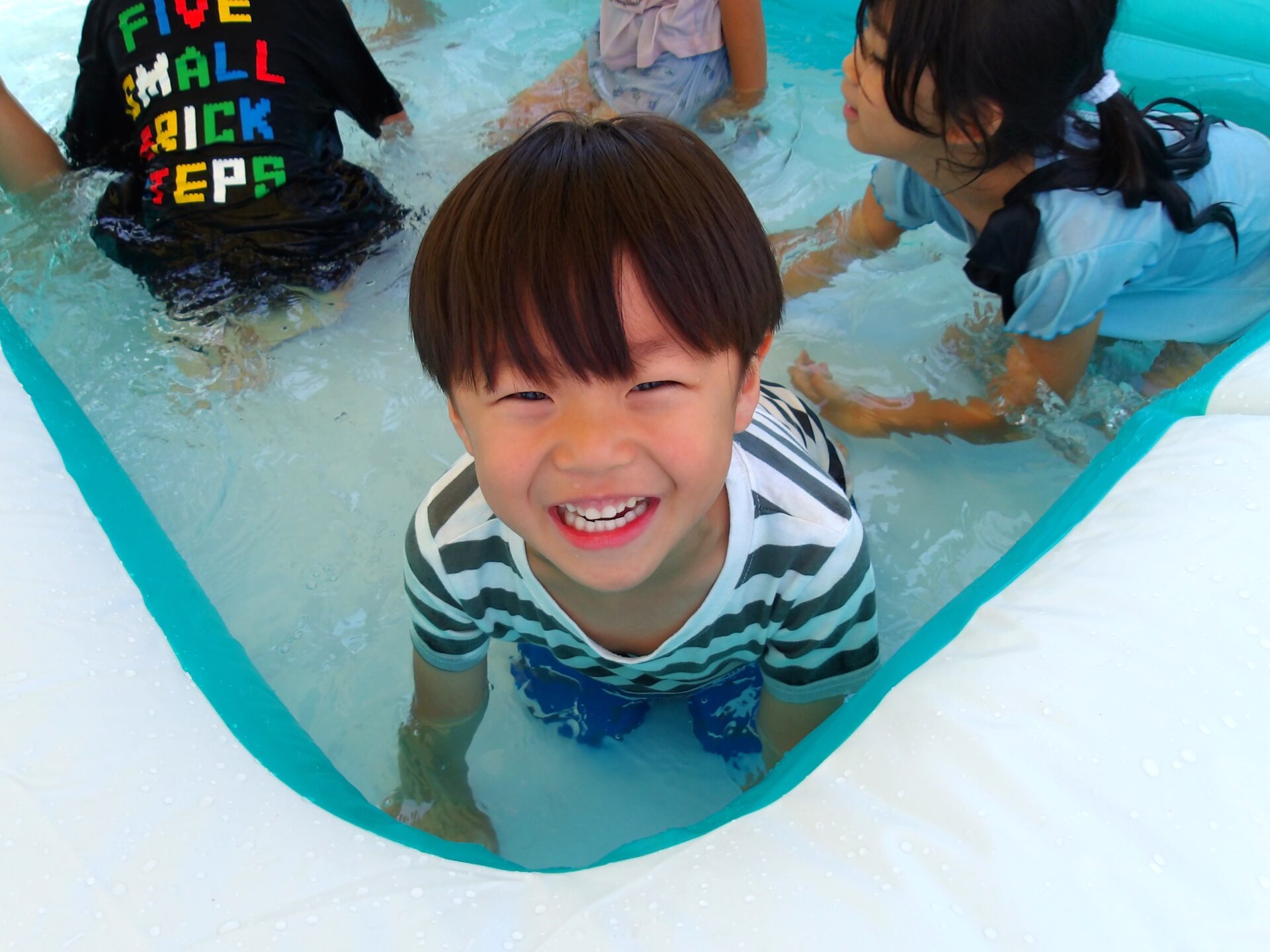 お友だちと一緒に遊ぶ笑顔も水しぶき以上にキラキラしています。