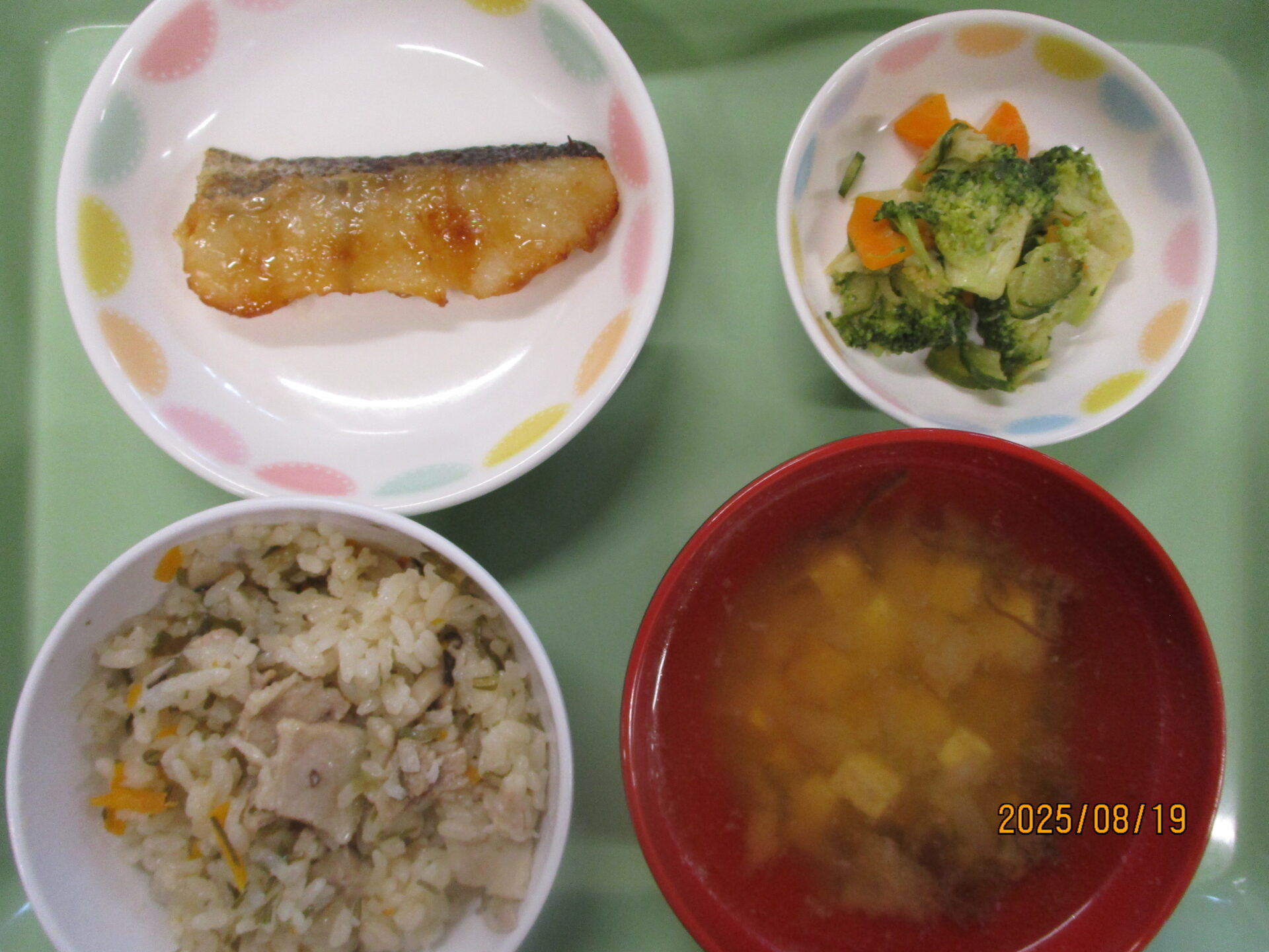 2025.08.19 園の取り組み ブログ 今月の郷土料理~食育献立~ 今月は沖縄県の郷土料理です。 ・ジューシー(沖縄県の炊き込みご飯です) ・魚のから揚げ ・もずくの味噌汁 ・きゅうりのサラダ 一覧へ戻る