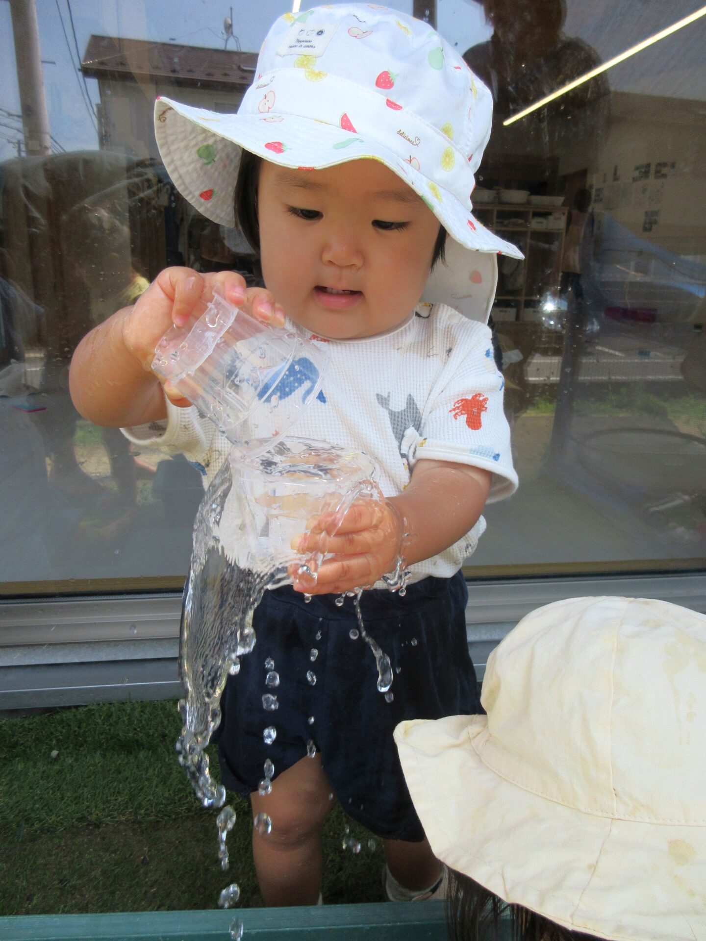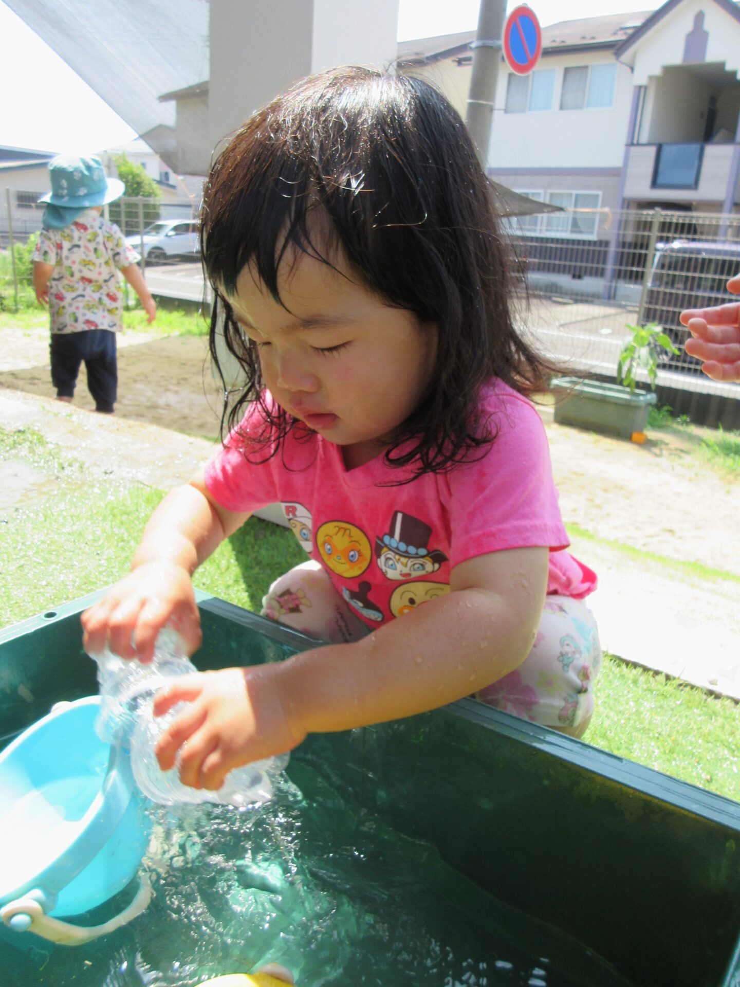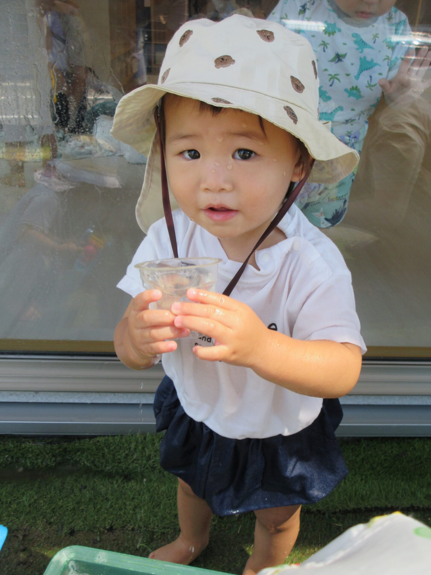 今日はだいち組(0,1歳児)の水遊びの様子をご紹介します。