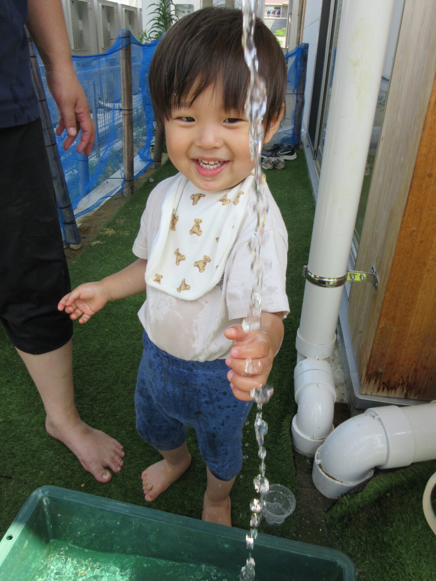 保育者が流している水を掴もうとしたり…