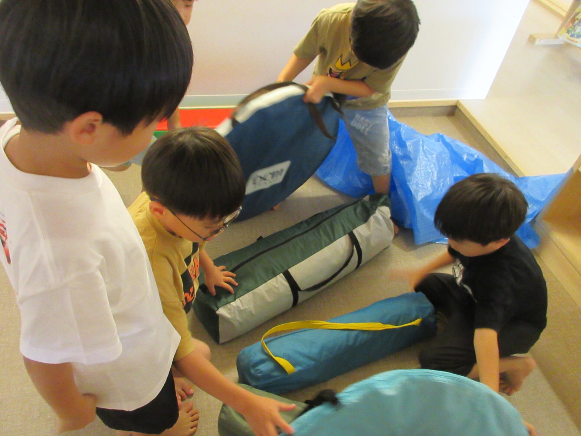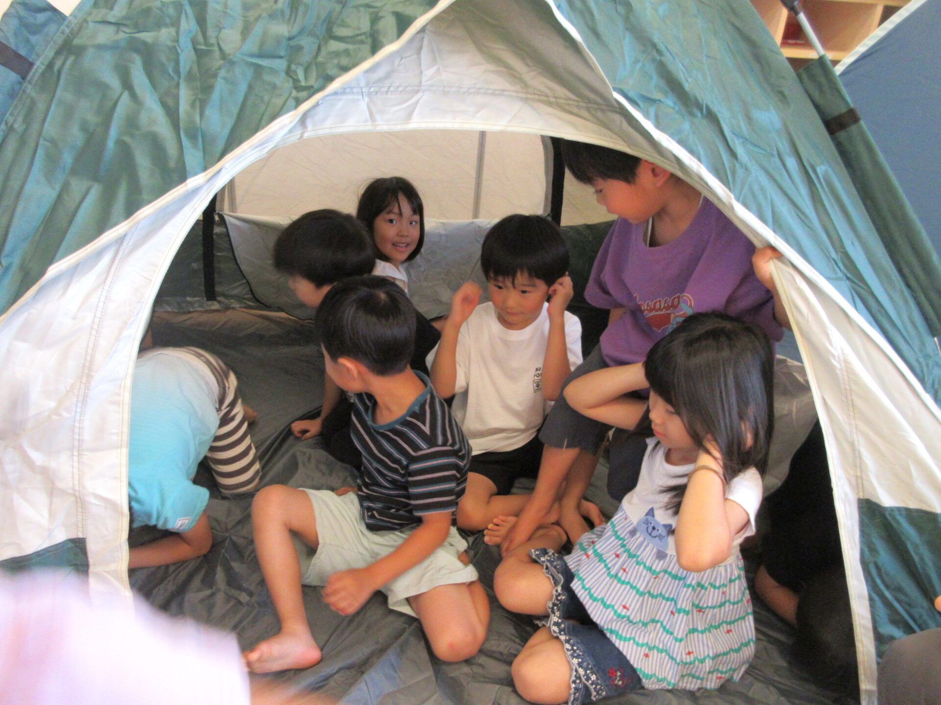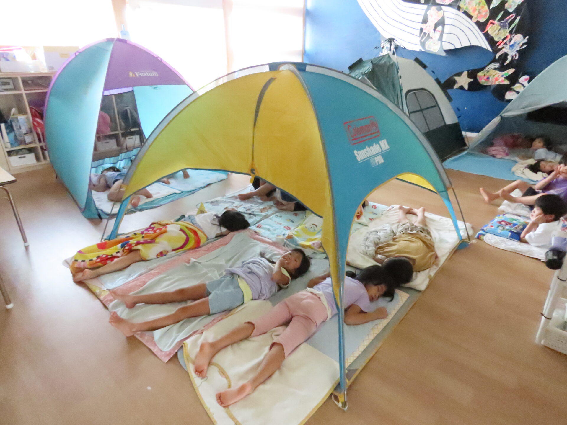 その日はテントの中でお昼寝をしました。キャンプ気分で楽しい!!