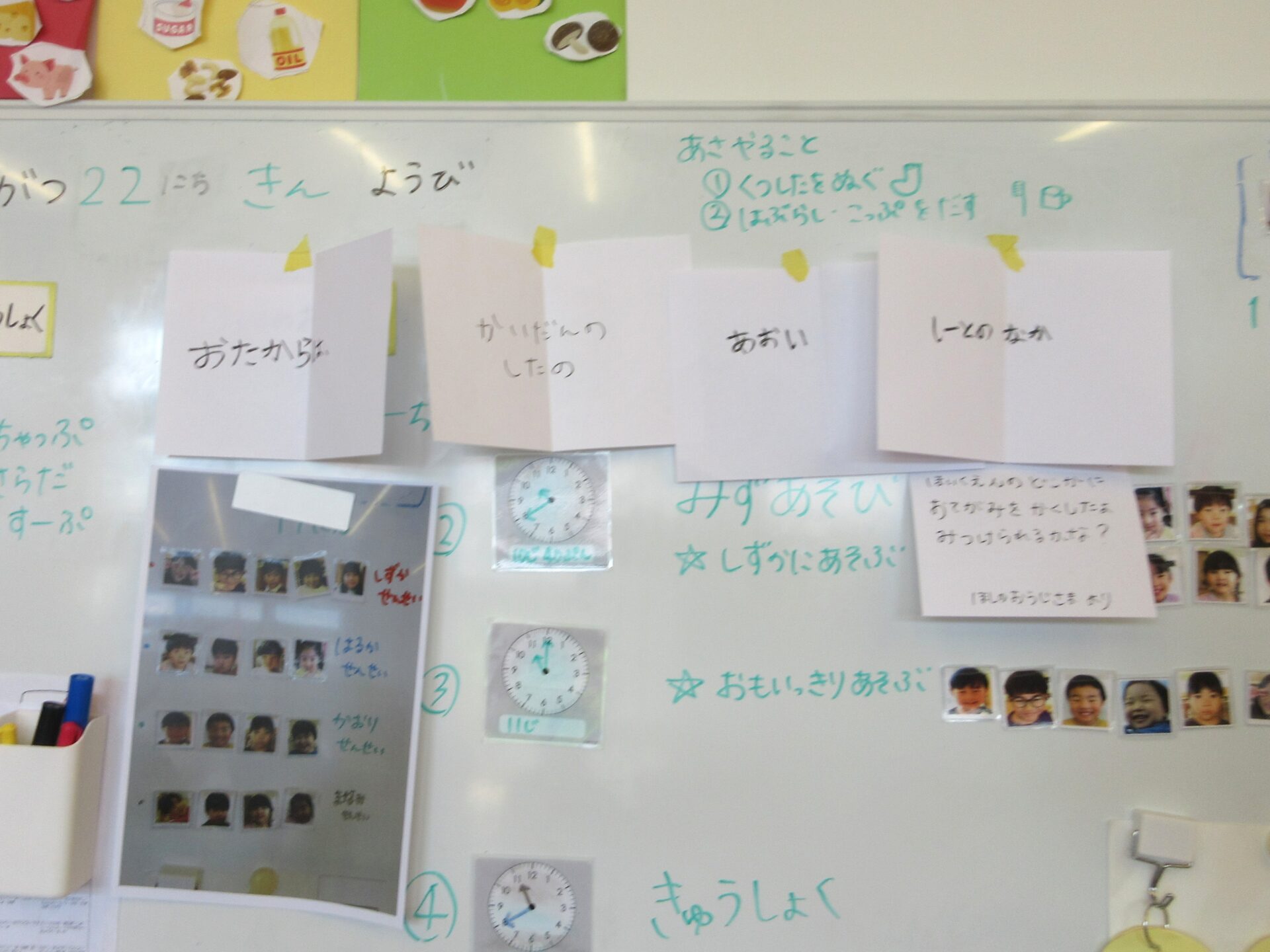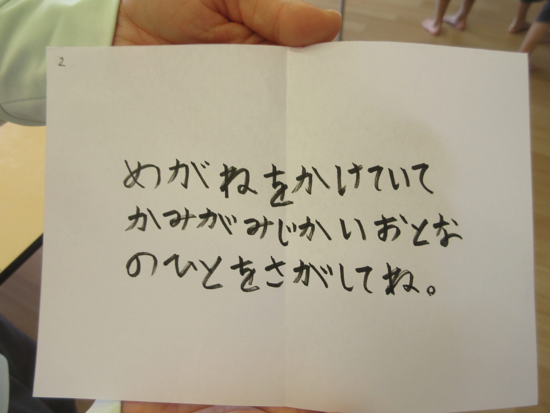 手紙の内容を知ったくじら組は、早速ほしのおうじさまからのヒントを基に、お手紙探しゲームを開始します。