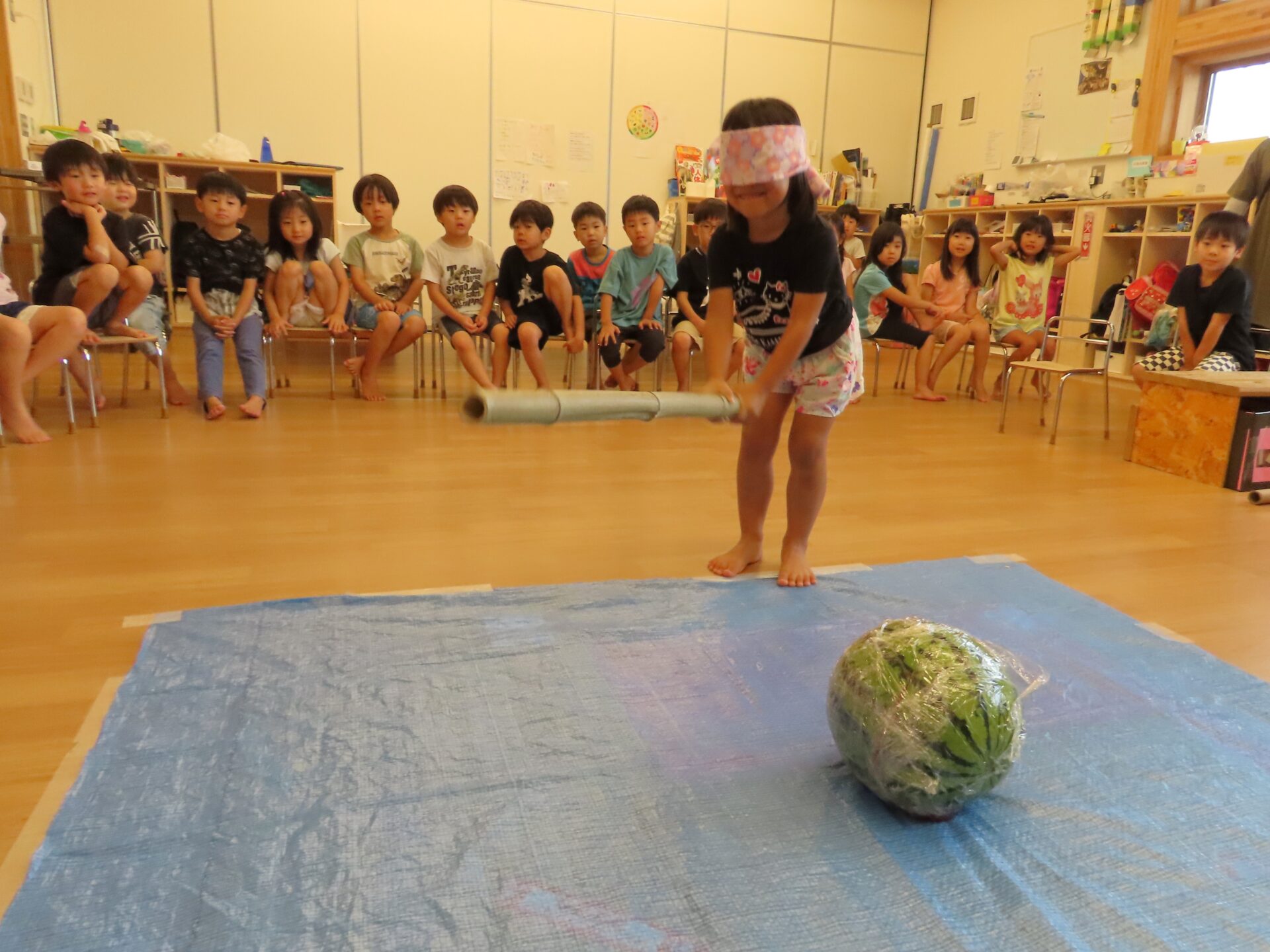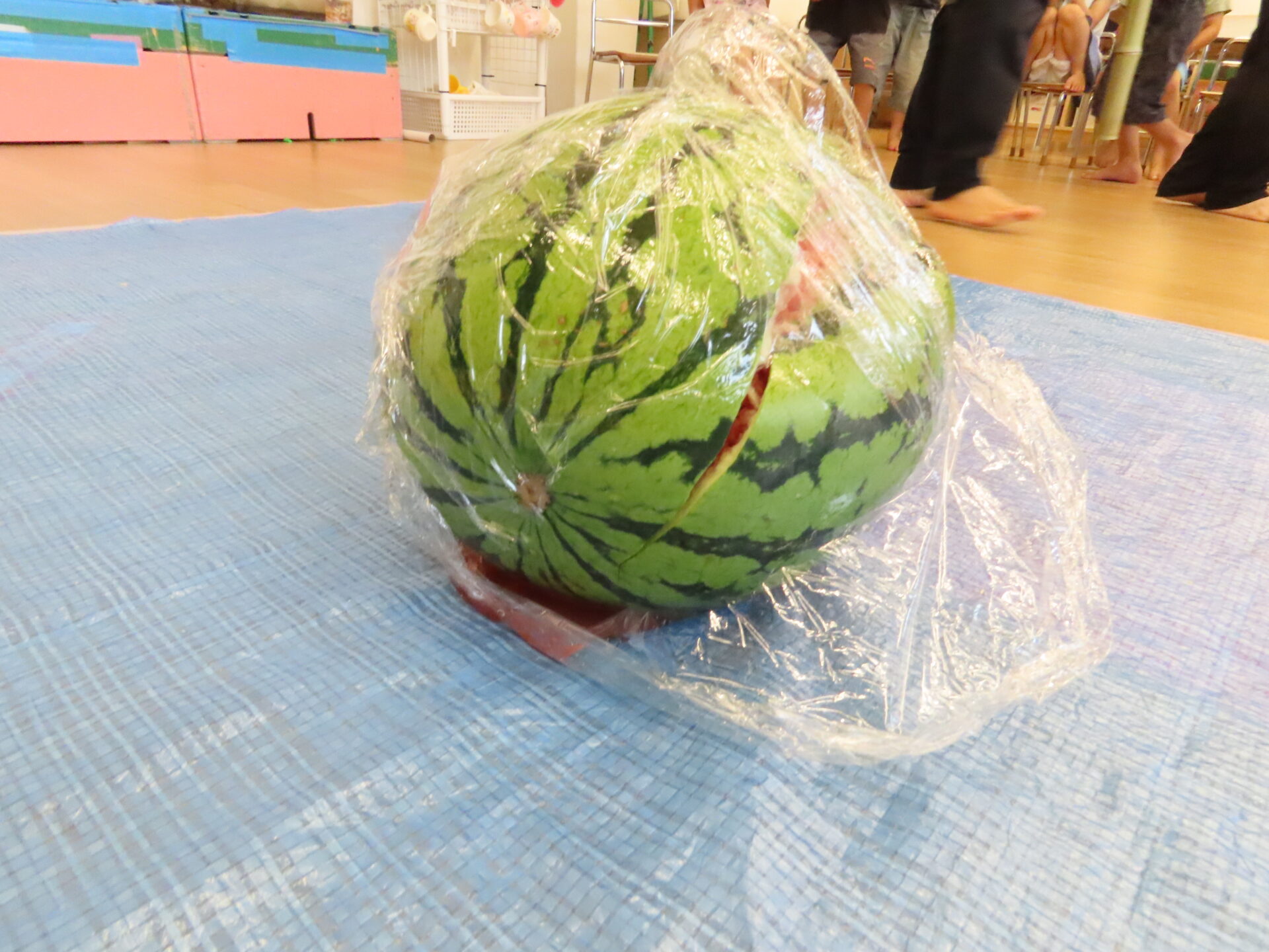 何で割るのかもみんなで話し合い「ラップの芯」と「竹の棒」に決めました。