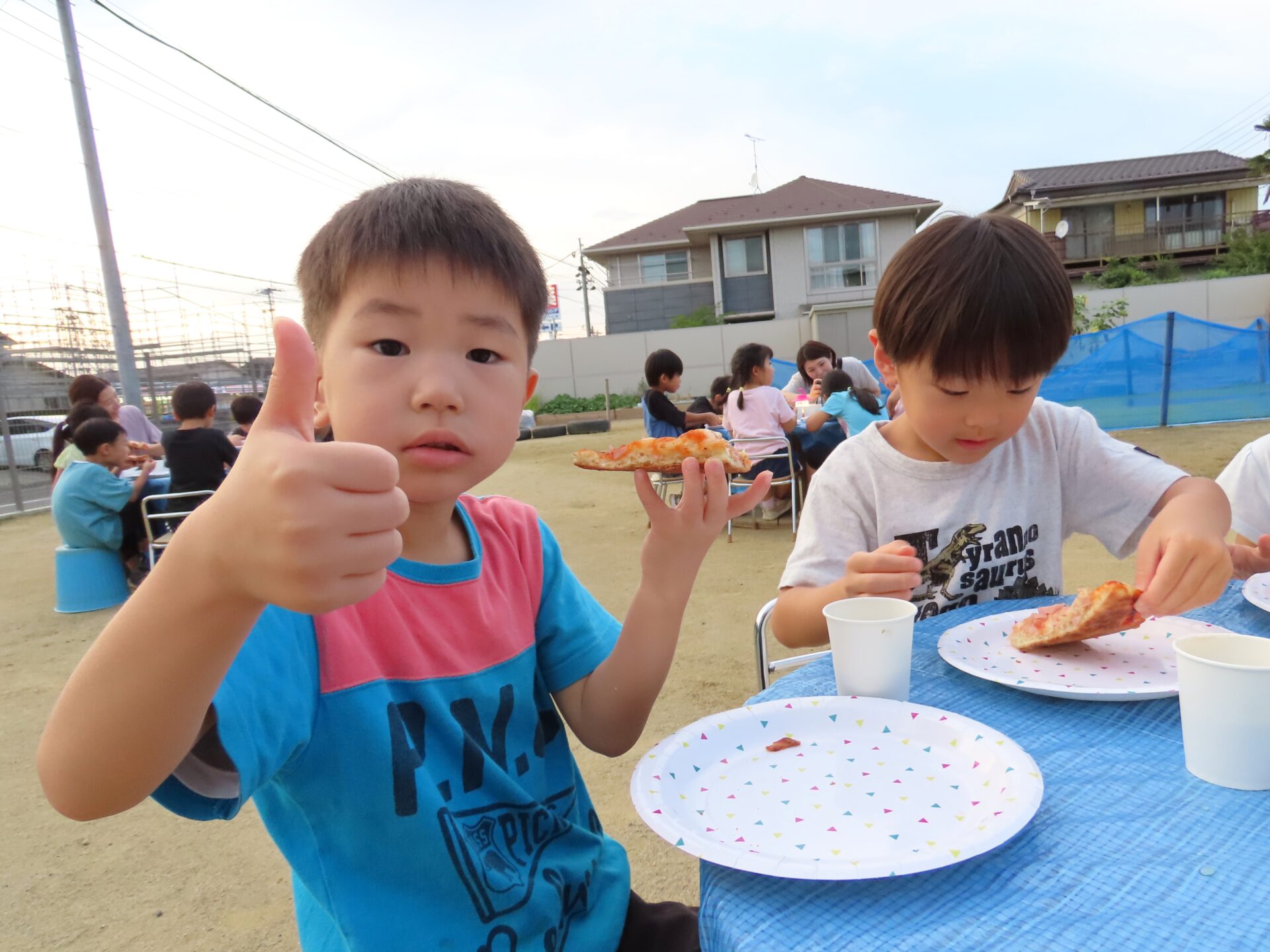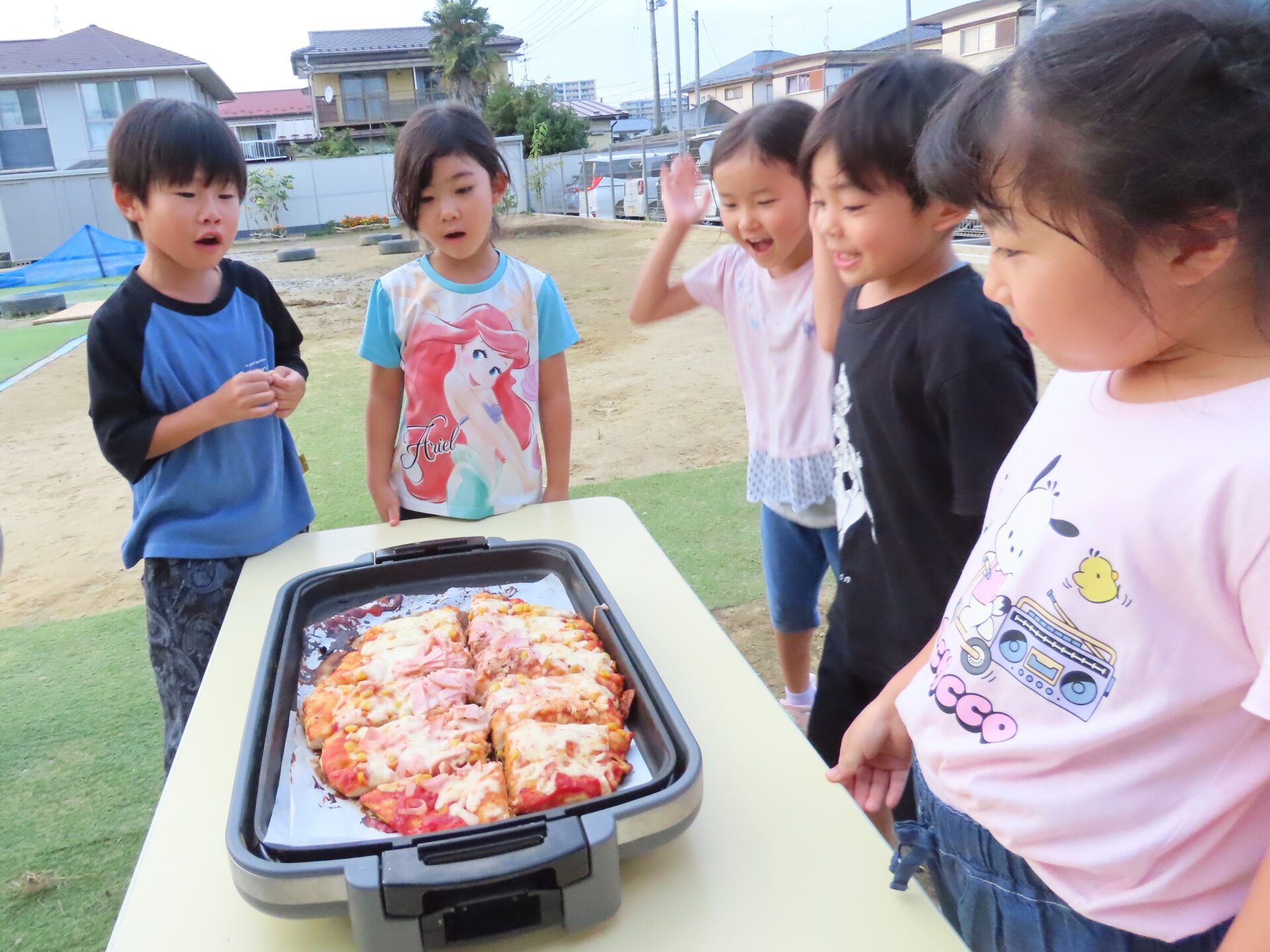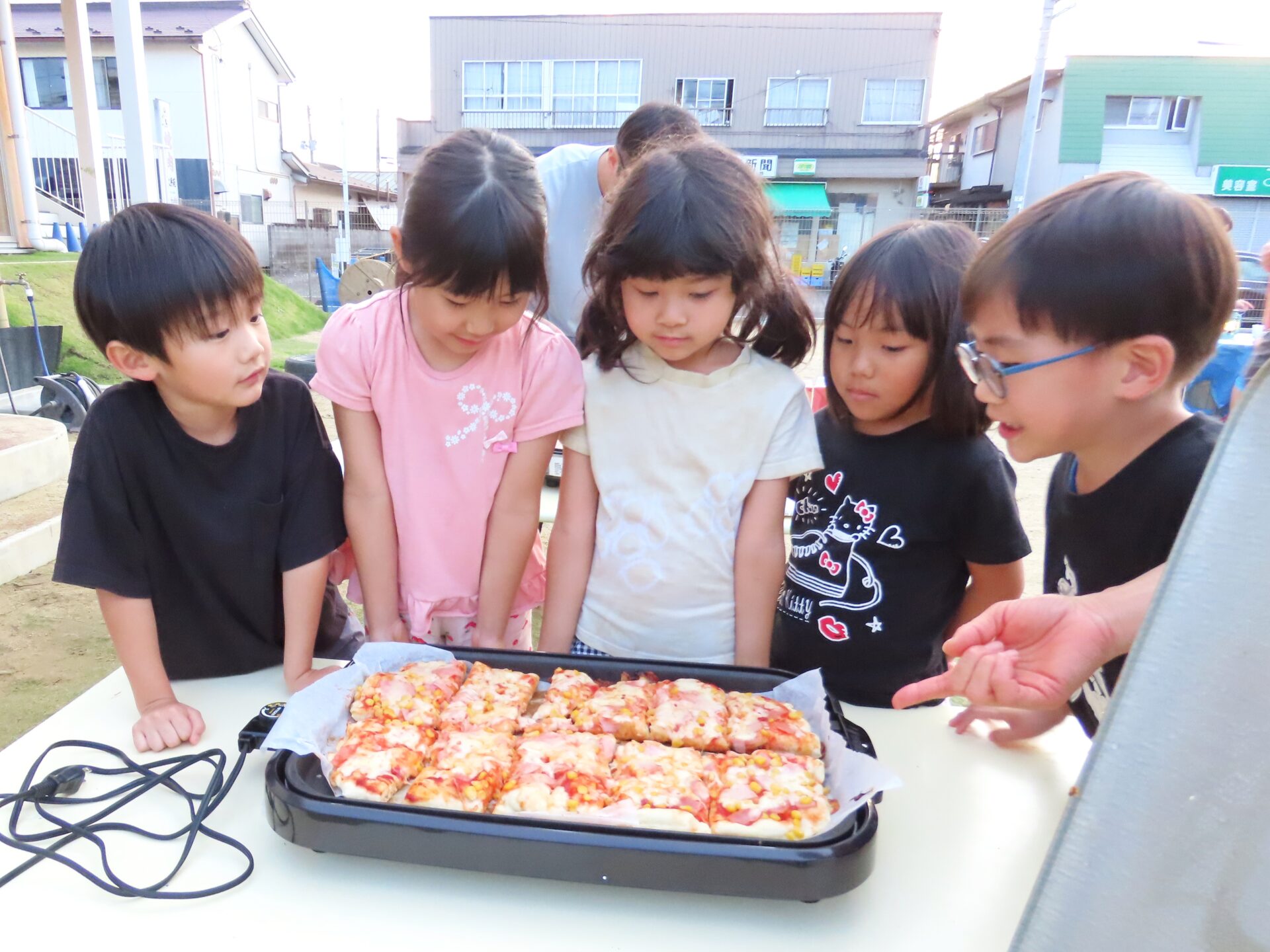 準備を進めている間に、おいしくピザが焼きあがりました!