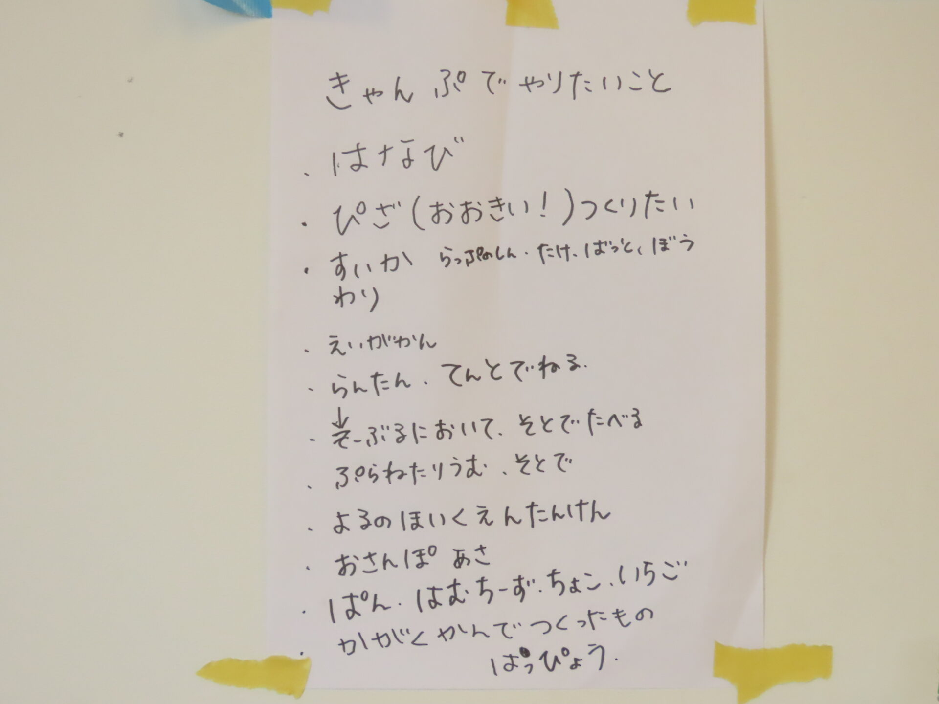 くじら組(5歳児)のこどもたちがみんなで話し合って決めた『キャンプでやりたいこと』