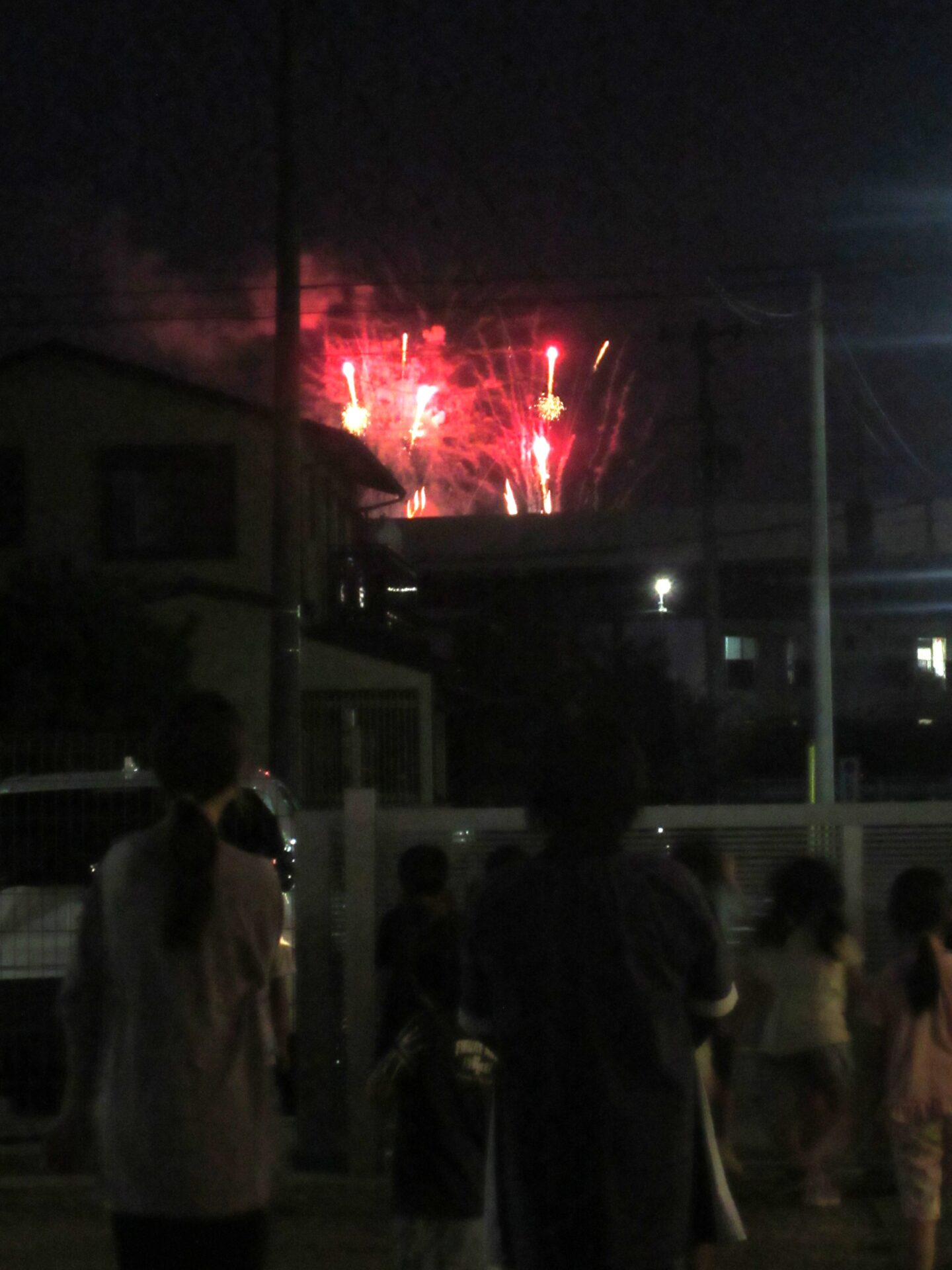ちょうど建物と建物の間から花火を見ることができました!偶然の打ち上げ花火でしたが、嬉しいサプライズとなりました。