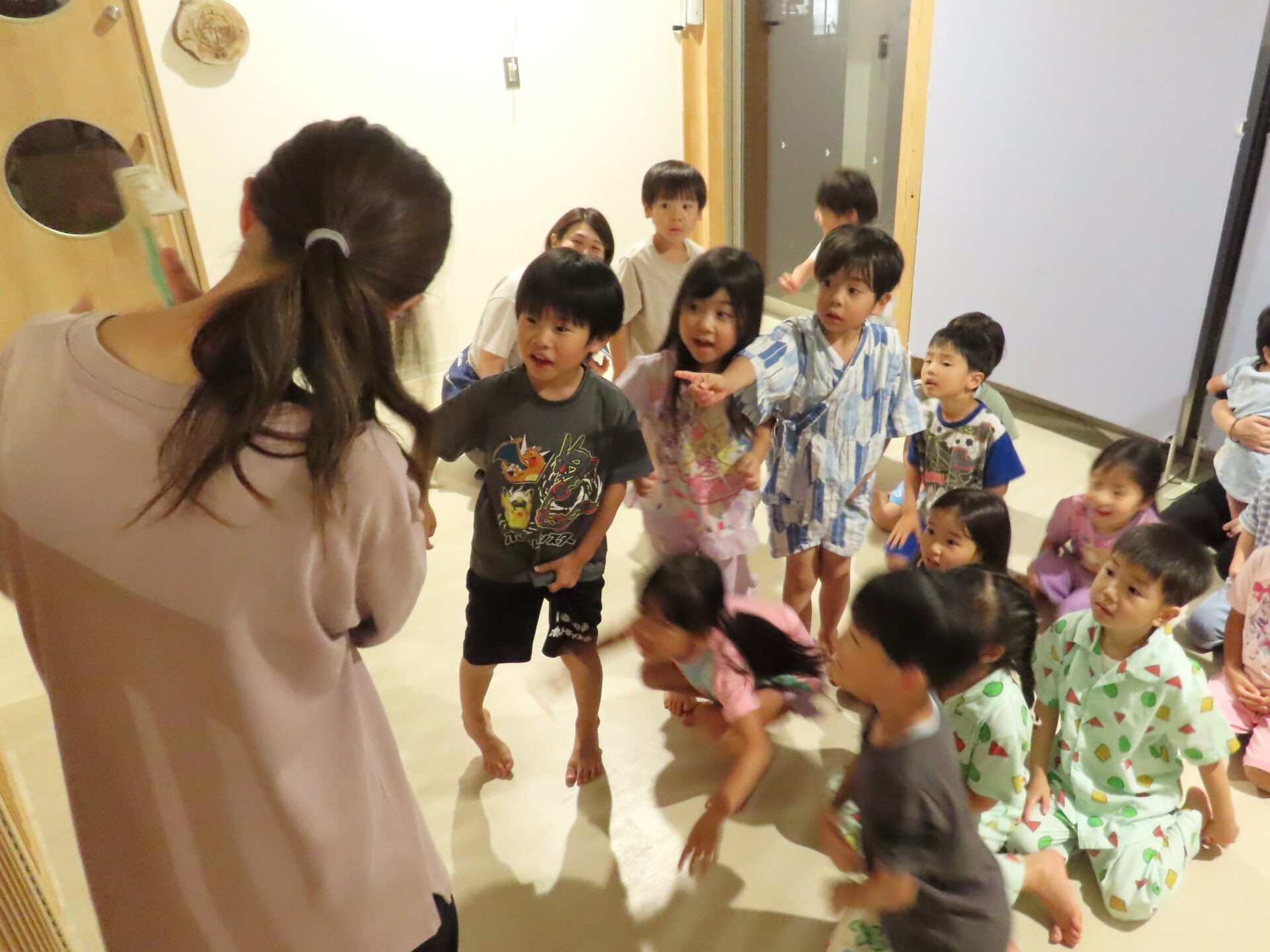 花火を楽しんだ後は、シャワーで汗を流し、『夜の保育園探検』です!