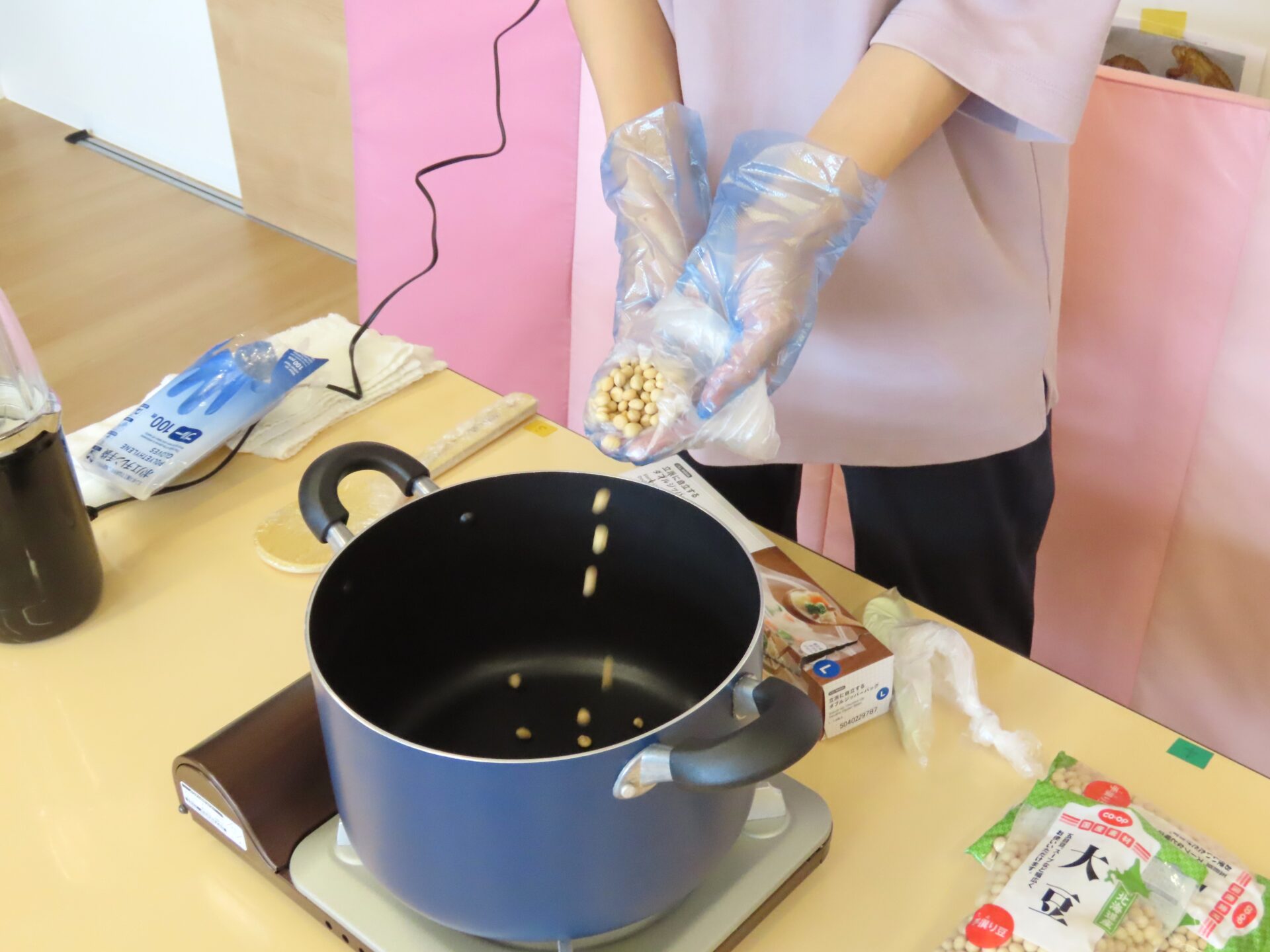 お部屋中に香ばしい匂いが広がり、大豆がこんがりしています。