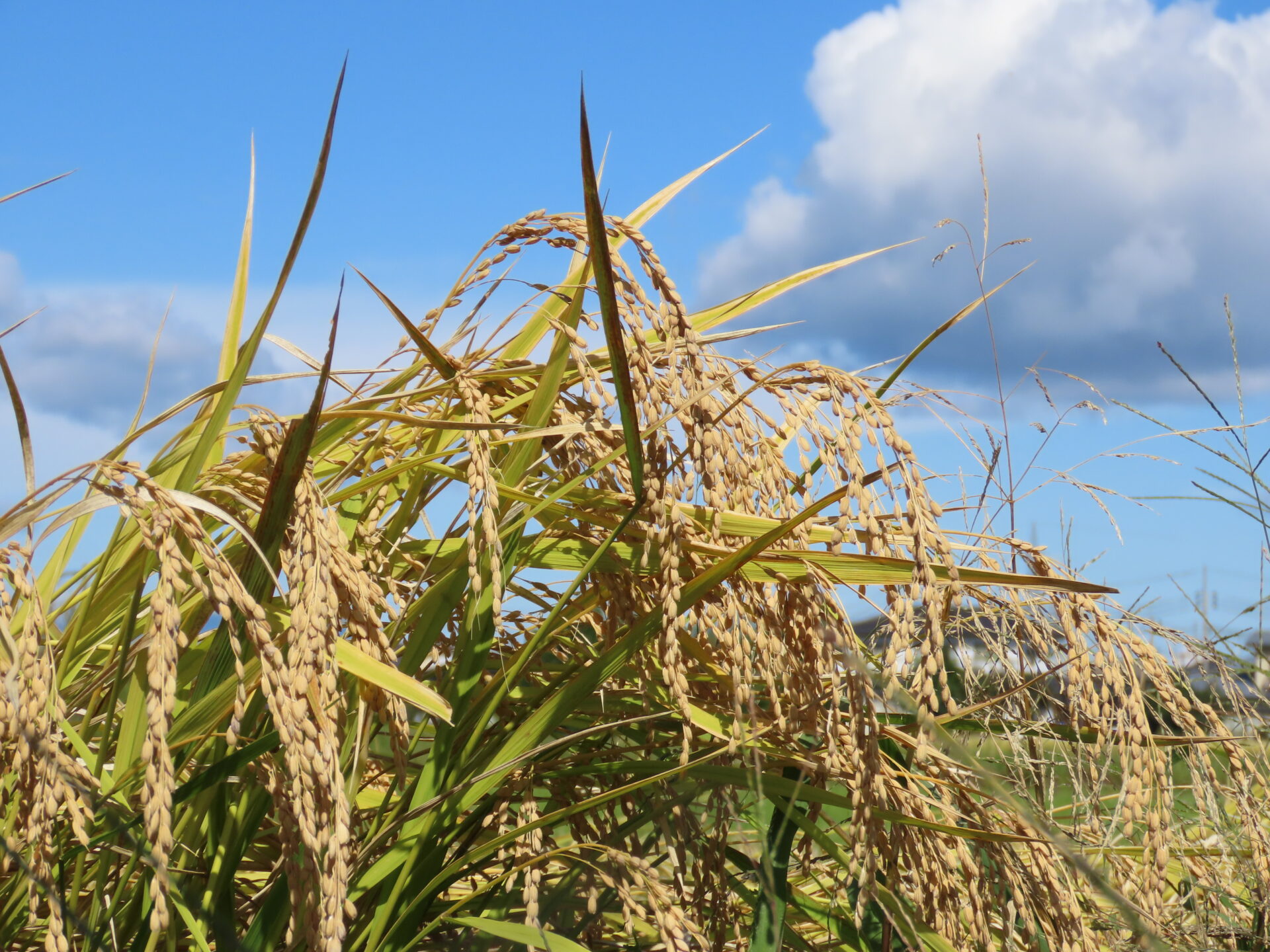 くじら組(5歳児)のこどもたちが植えた苗は、こんなに見事な稲に育ちました。