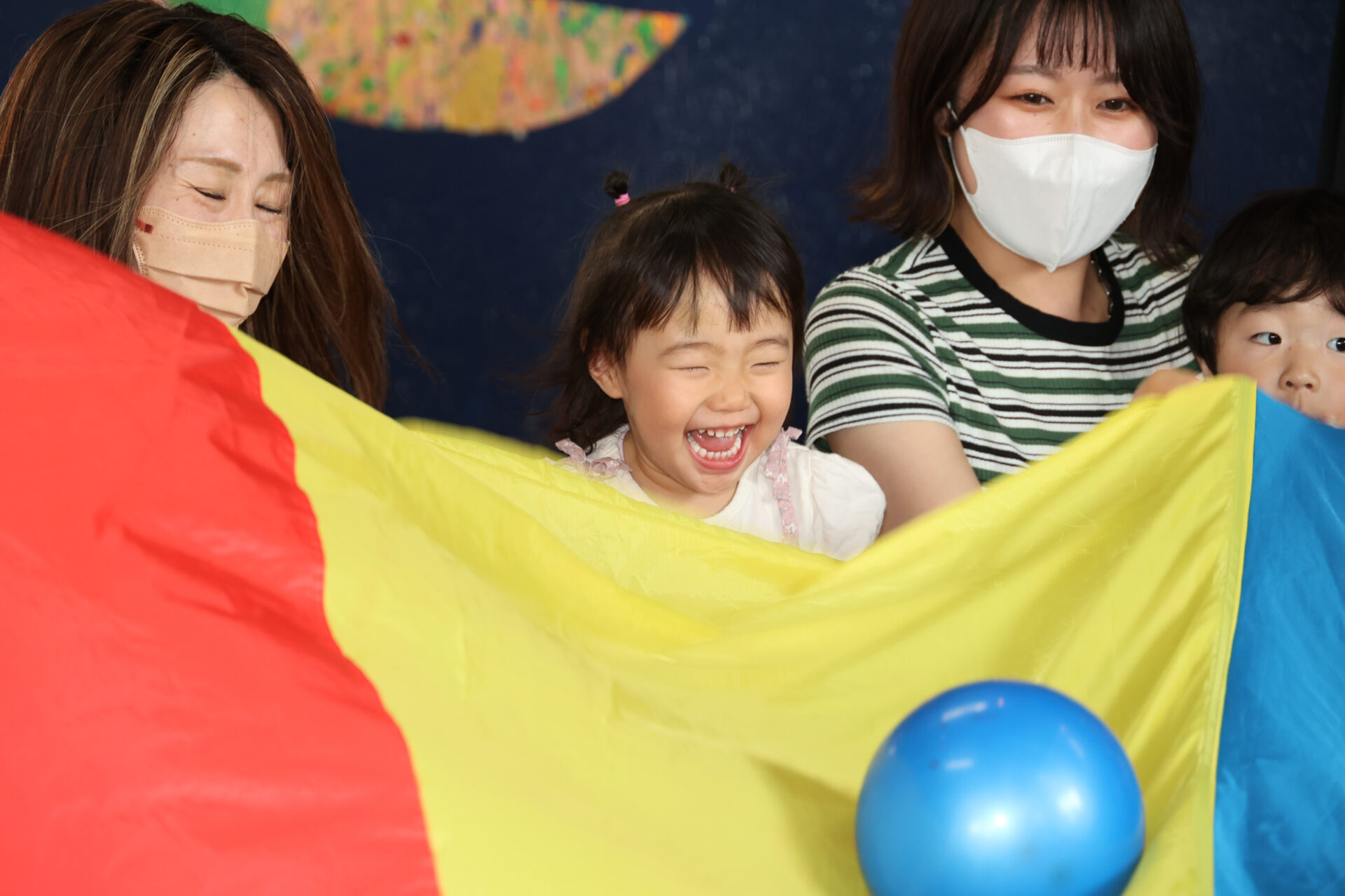 大人の人数が多いことで、ダイナミックにボールが弾む様子に子どもたちは大喜びでした。