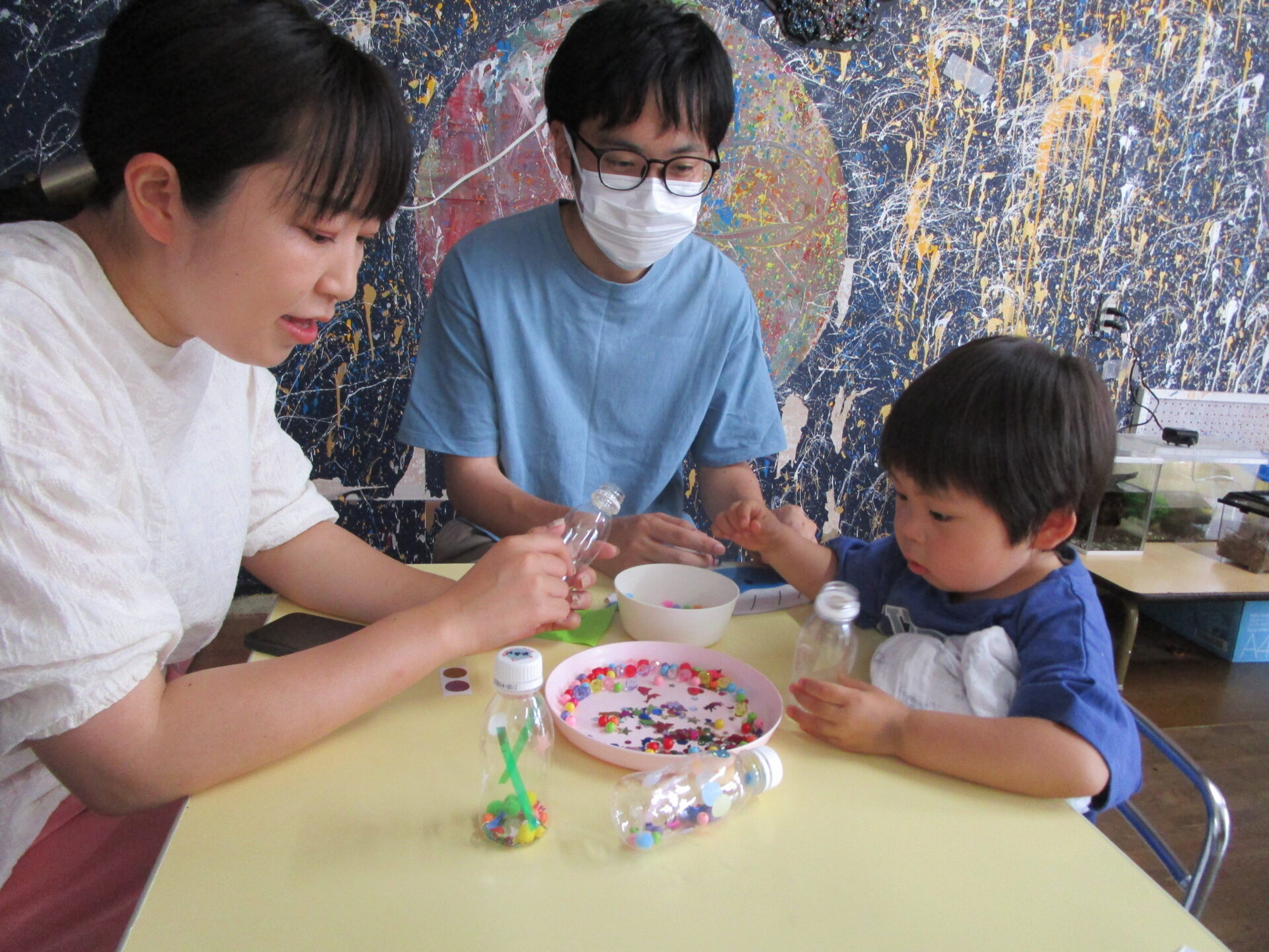マラカス作りでは親子でのパーツ選びでは、大人も楽しんで選ぶ様子が伺え、見ているだけでも楽しい雰囲気いっぱいでした。