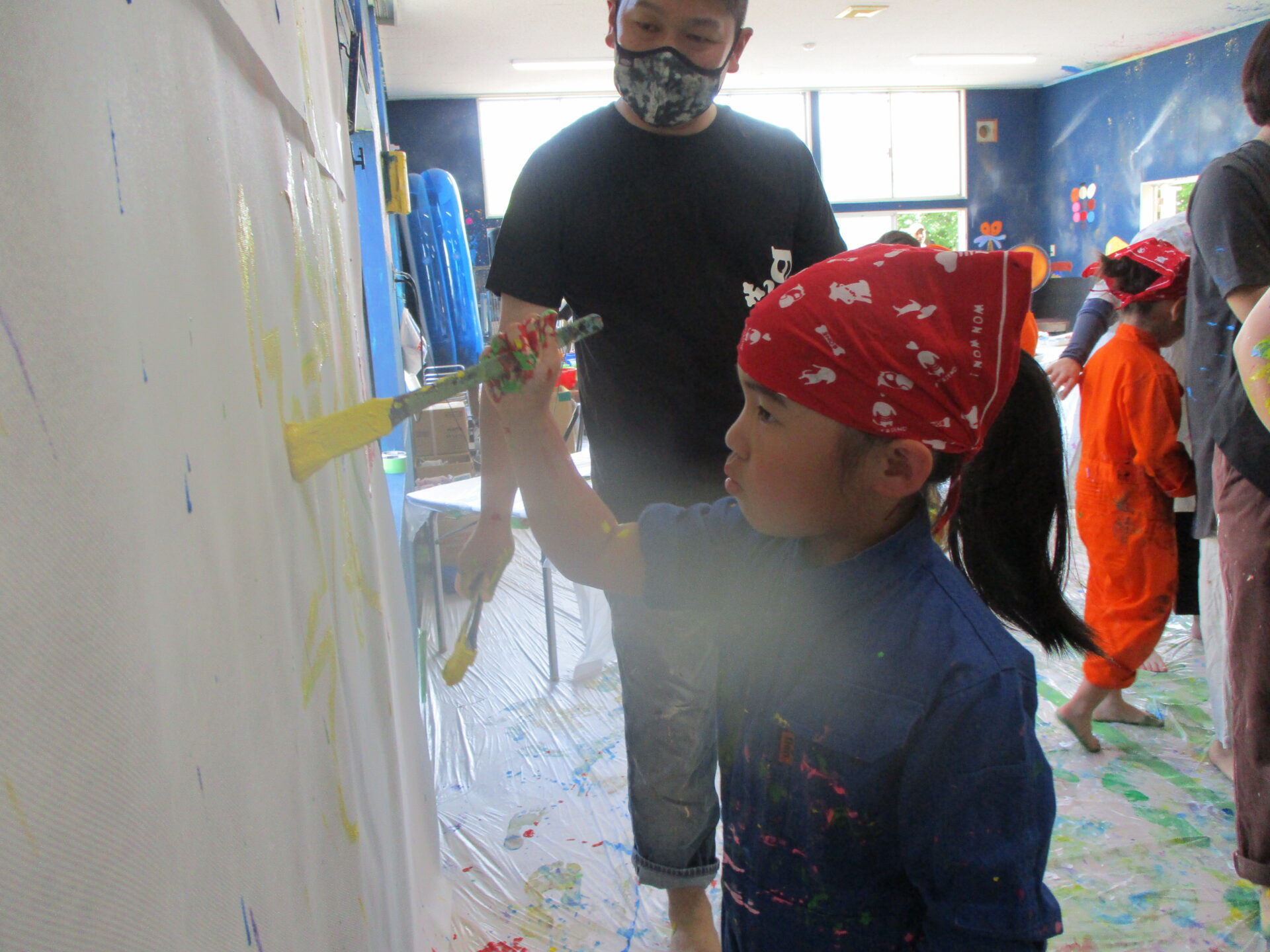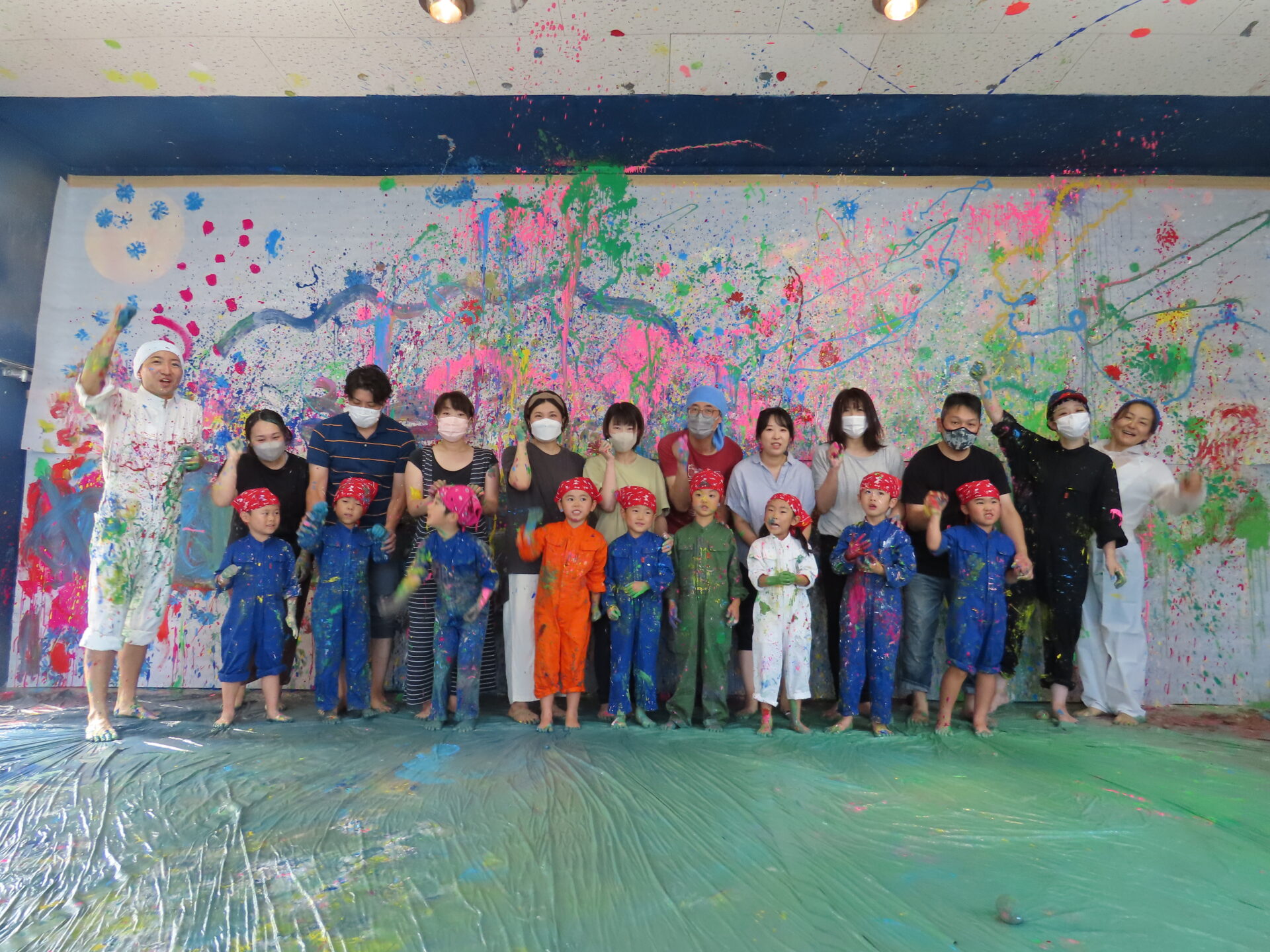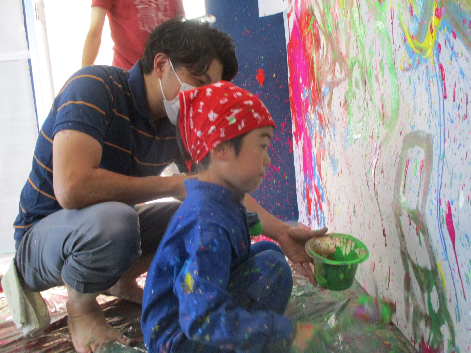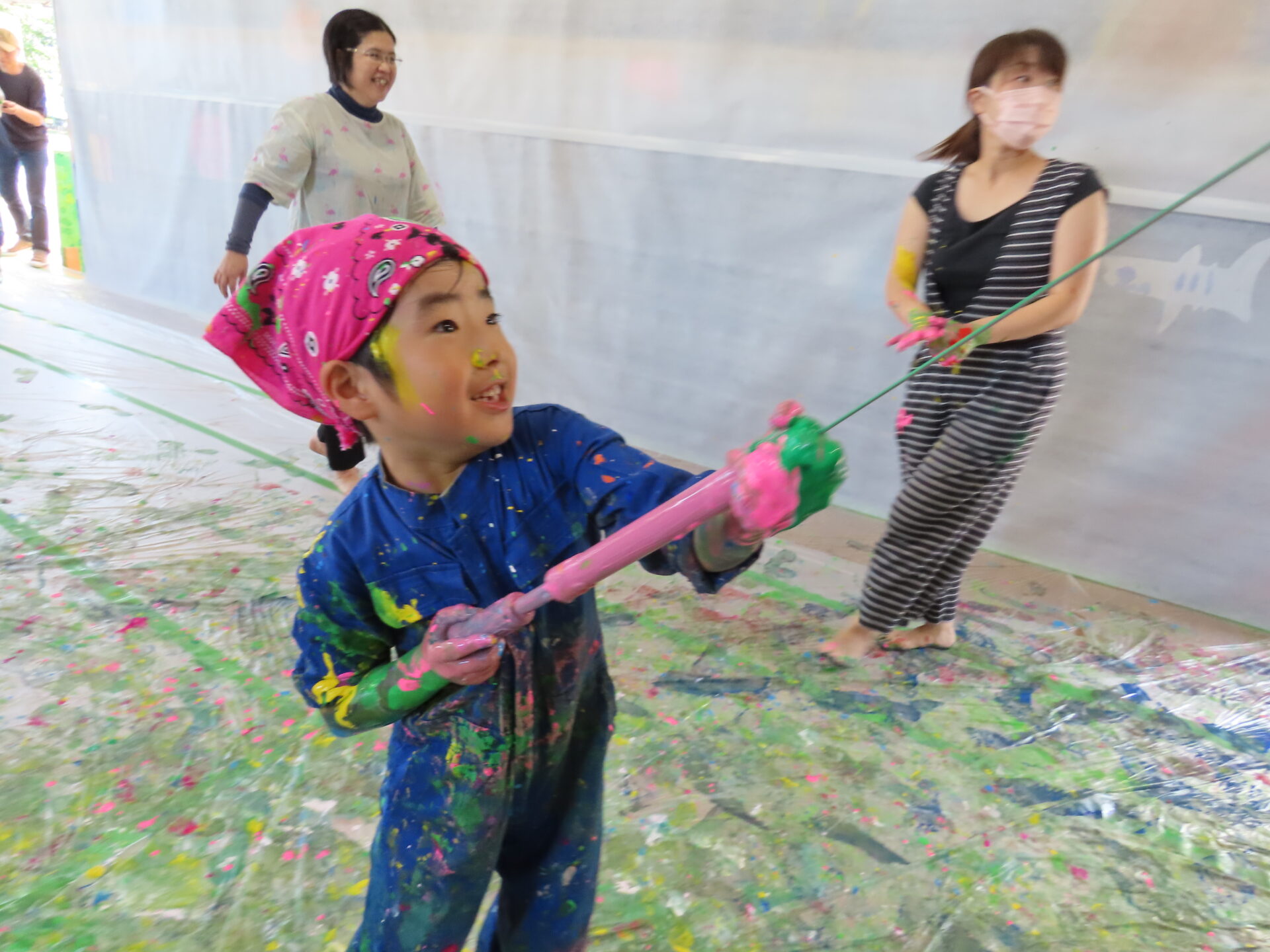 普段の絵の具遊びをお家の方と一緒に出来ることが嬉しい様子で、いつも以上に生き生きしていた子どもたちの表情が印象的でした。