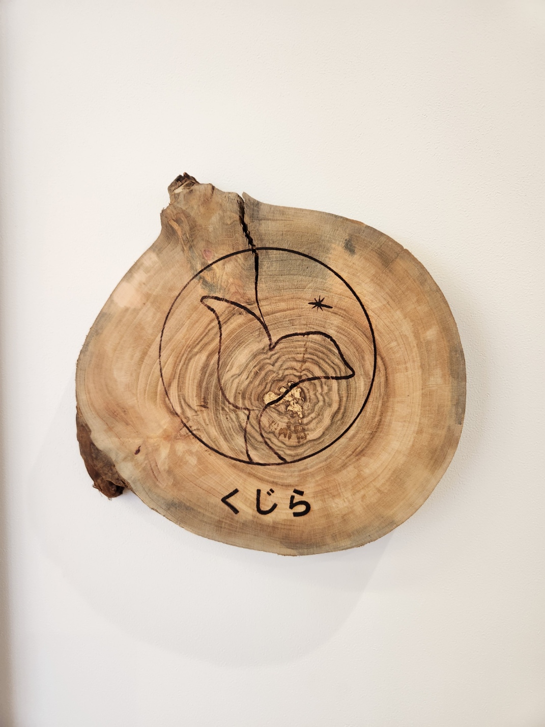 新園舎の保育室のクラス名サインです。素材は建替工事のため、やむなく伐採した桜の樹を、くじらクラフトに加工作成をお願いしました。