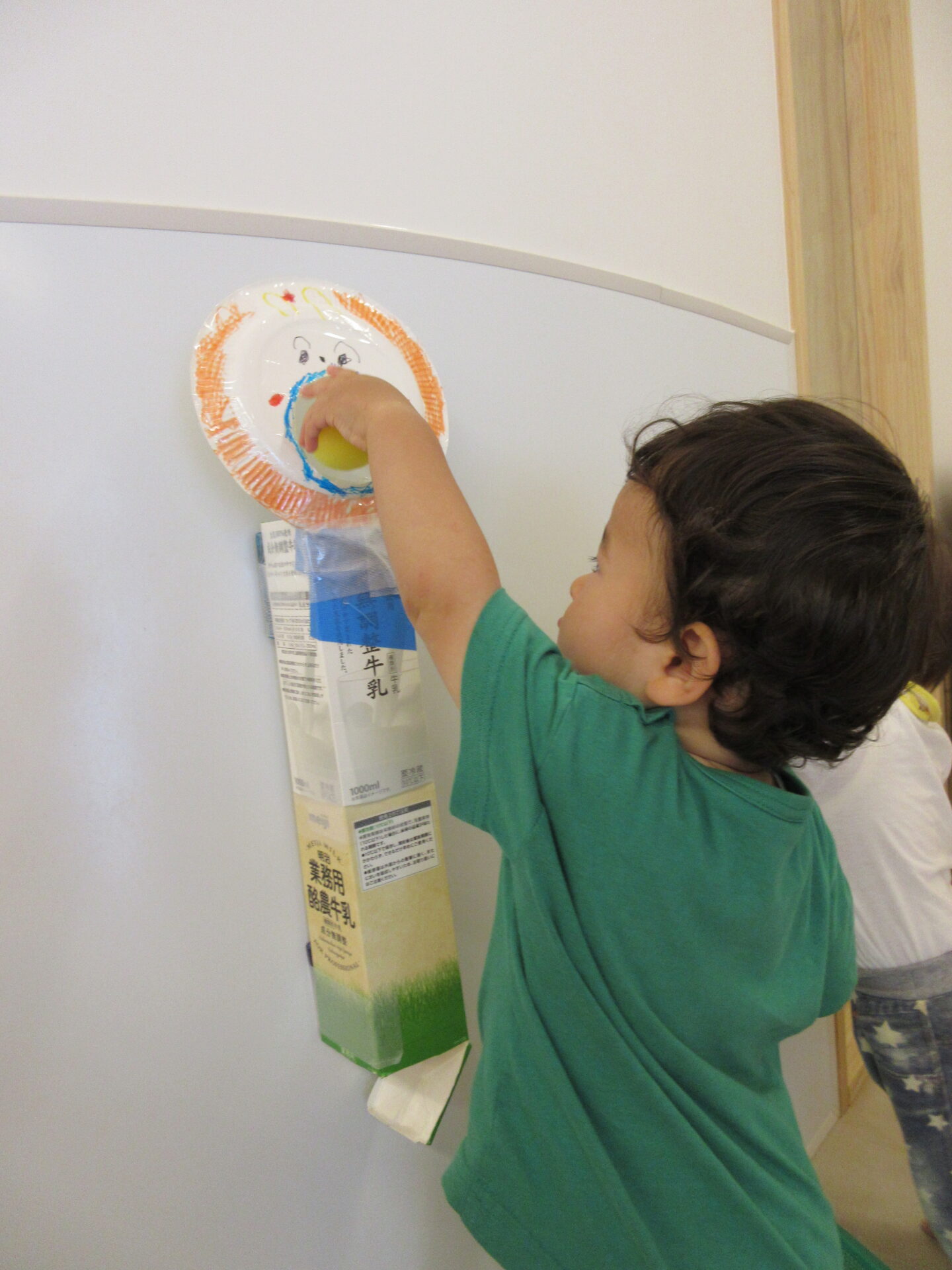 下から「ぽっとん!」と落ちてくることが面白くて、何度も繰り返し食べさせて遊ぶだいち組のこどもたち。